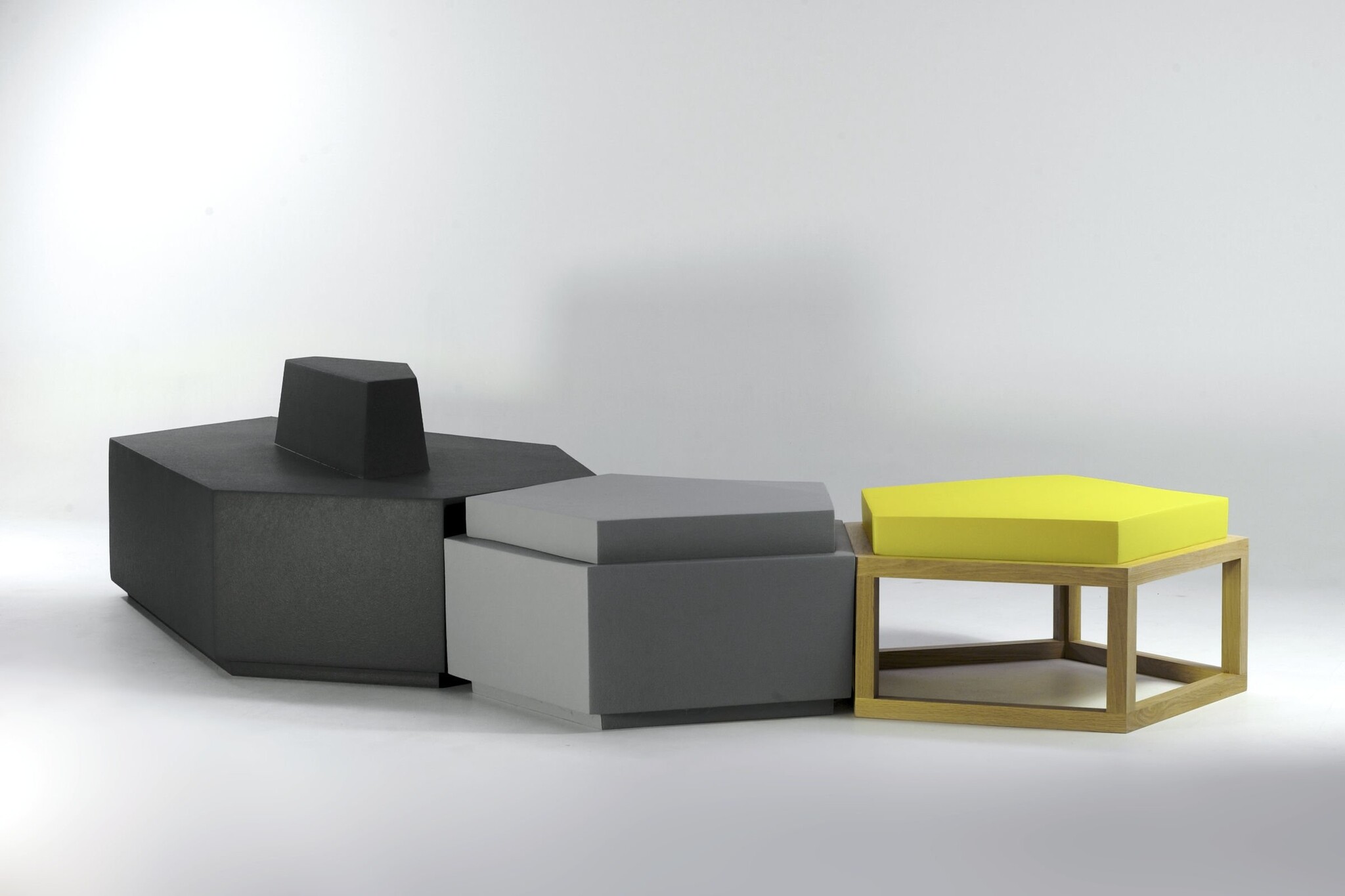 Een bank en poef in diverse maatvoeringen en kleuren. Pentagon is tevens geschikt voor buitengebruik. Dankzij de diversiteit van dit meubel, is de Pentagon in alle soorten interieur en omgevingen toe te passen.