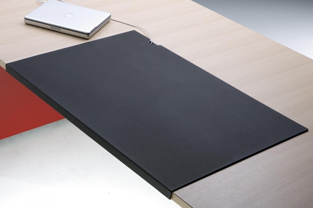 Renz Lane tafel en de container zijn door een flexibel koppelstuk met elkaar verbonden. Dit maakt het programma wendbaar en deze koppeling kan tevens gebruikt worden om de kabels door te voeren. Deze functies staan op de achtergrond en storen derhalve het rustige totaalbeeld niet. Adapters, telefoonsnoeren enzovoort verdwijnen via de eventuele lederinlay in de aluminium kabelgoot onder het blad. De bekabeling naar de bodem is nauwelijks zichtbaar via de container of via de verticale kabelgoot aan de binnenzijde van de wang.