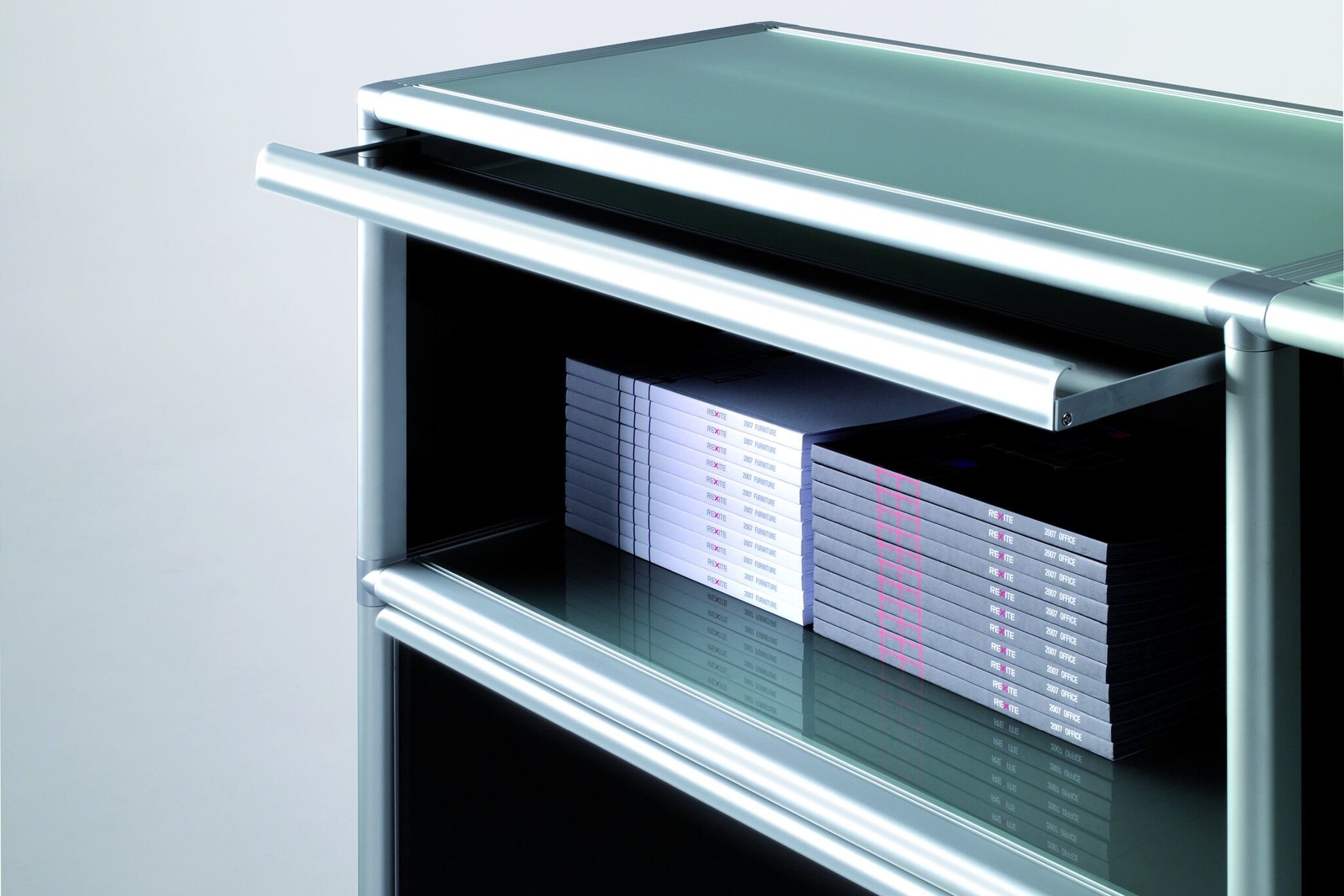 De Rexite Boox is een modulair kastensysteem. De basis is een stellingsysteem met gepolijst of geanodiseerd aluminium frame, methacrylaat panelen in wit of kristal met geharde glas planken in transparant, mat of wit. Het systeem vrij te combineren, zowel in hoogte en breedte met een maximale hoogte van 229 cm. Door te combineren met hoogte, aantal planken en kleur is er altijd een Rexite Boox die past in uw kantoorinterieur.Rexite en het milieu