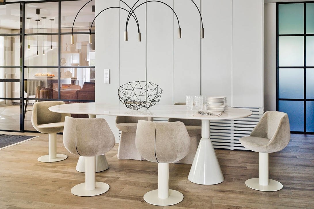 Houten poten: eiken met F1 epoxy gecoat F1 staal interieurs gekleurd volgens de kleurenkaart.