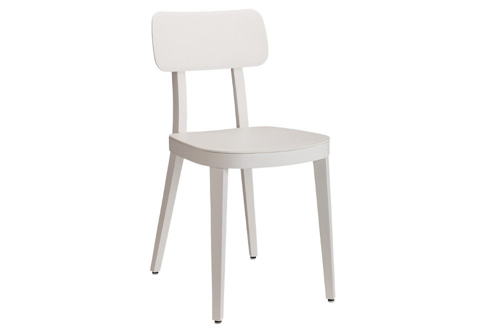 Deze restaurantstoel heeft een massief beukenhouten frame in de kleur wit. De zitting en rug zijn van polypropyleen. Metz SC stoel is tevens verkrijgbaar met een zwart frame of blank gelakt met zwarte zitting en rug.