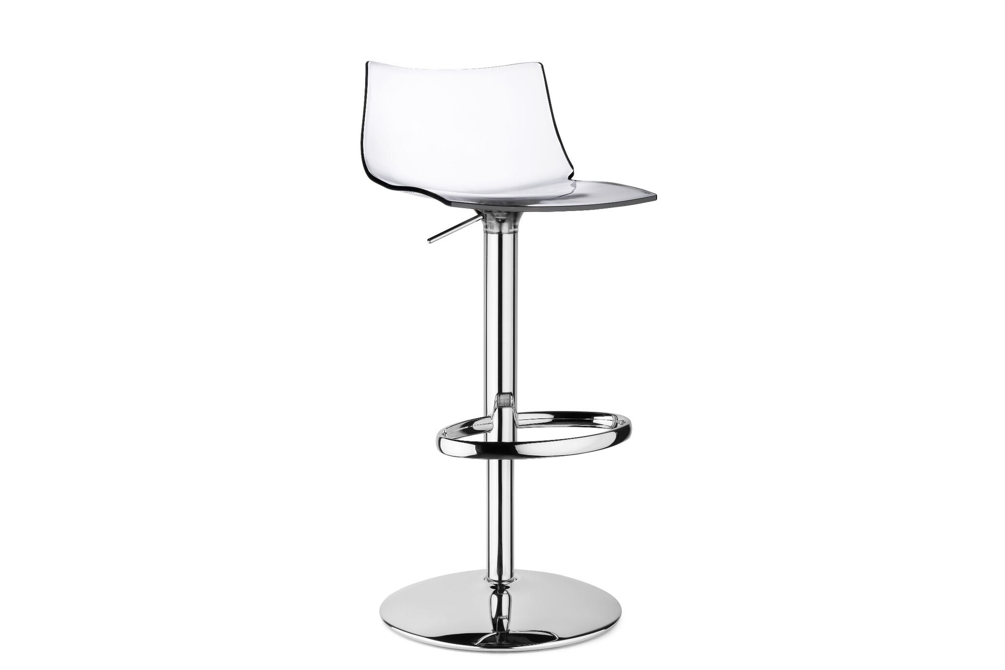 Day Up is een draaibare hoge kruk en heeft een hoogteverstelling door gasveer en heeft een verchroomd frame met voetensteun. De kuip is gemaakt van recyclebaar polycarbonaat.