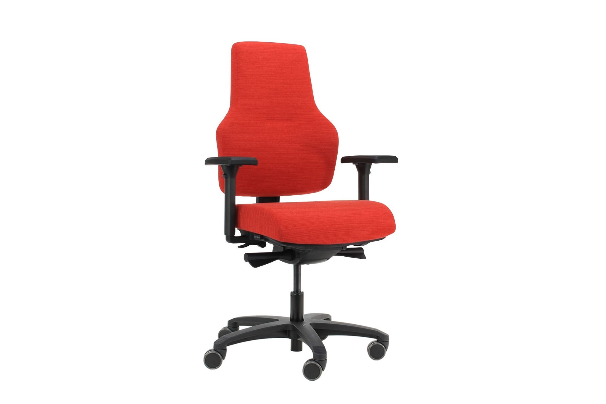 Synchromatic: Synchroon verstelbare rug en zitting, automatische tegendrukinstelling op basis van lichaamsgewicht met fijnafstelling knop.