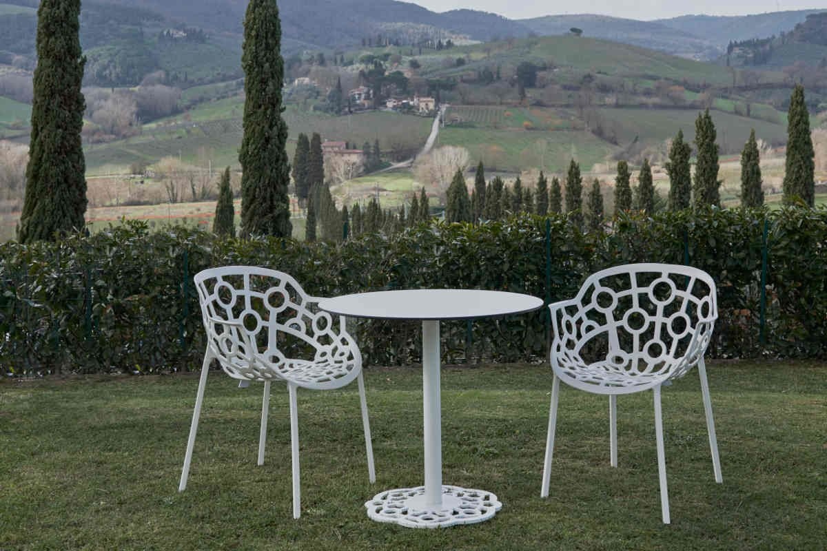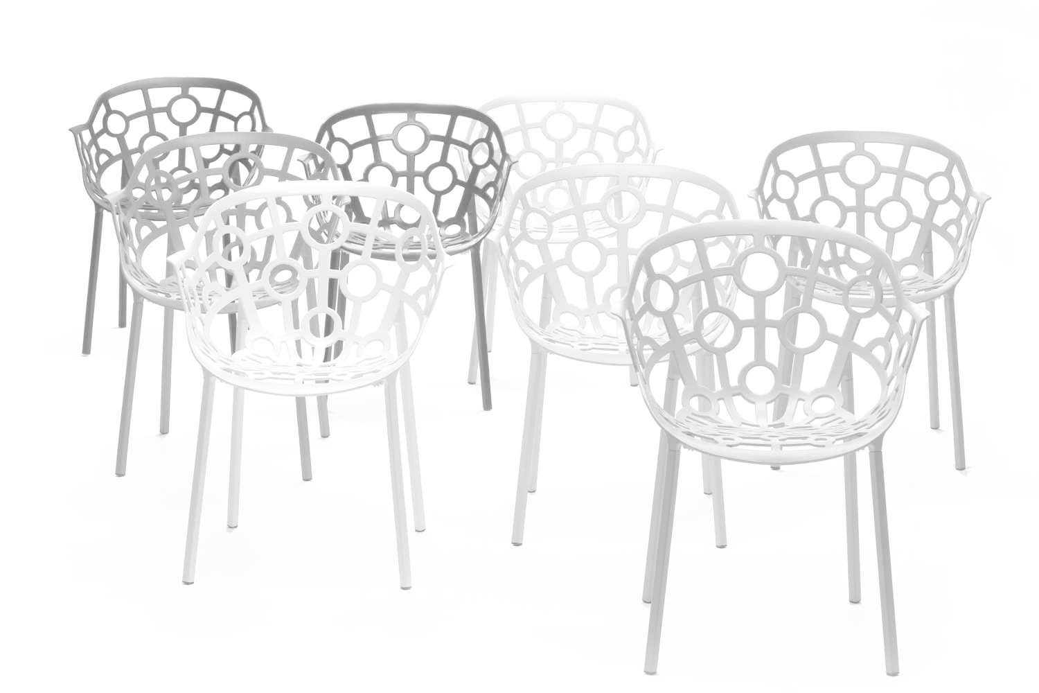 Polo is een stapelbare lightgewicht stoel vervaardigd van aluminium van het Italiaanse designmerk Segis. De stoel met haar open gewerkte patroon met geometrische vormen is een geschikte keuze om zowel als binnen- als buitenmeubilair in te zetten. Heeft u een buitenterras of dakterras? Dan kunt u voor een mooi stijlvol geheel dezelfde stoelen ook binnen, voor de inrichting van uw bedrijfsrestaurant of bedrijfskantine, toepassen. Polo is ook beschikbaar als kruk voor aan de bar of hoge tafel. Segis Polo stapelbare stoel, de kenmerken