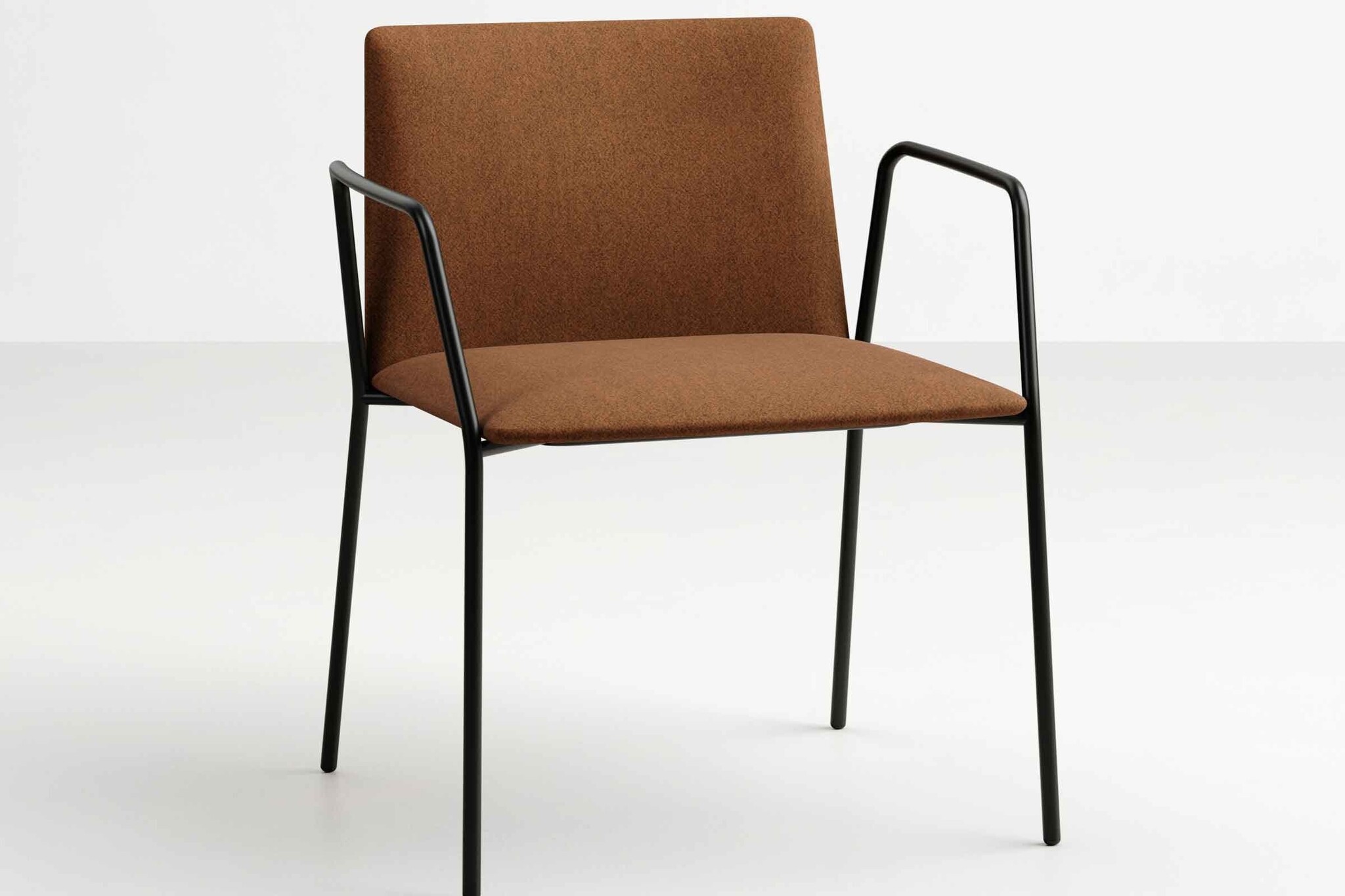 S0191: 4 poot stoel met stalen armleuning (gesloten). Stapelbaar.S0192: 4 poot stoel met stalen armleuning (open). Stapelbaar.