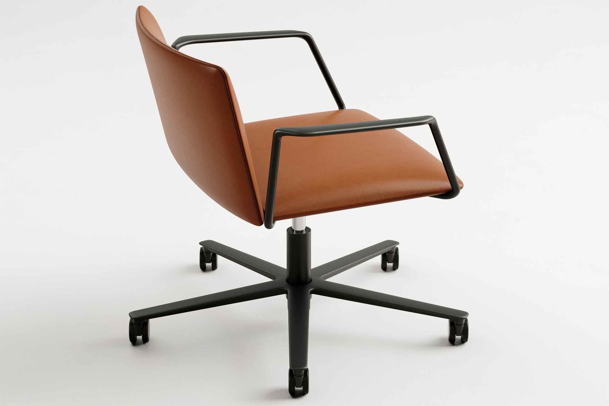 Stoel met spinvoet op wielen en gesloten armleuningen (R0126 en R0127)