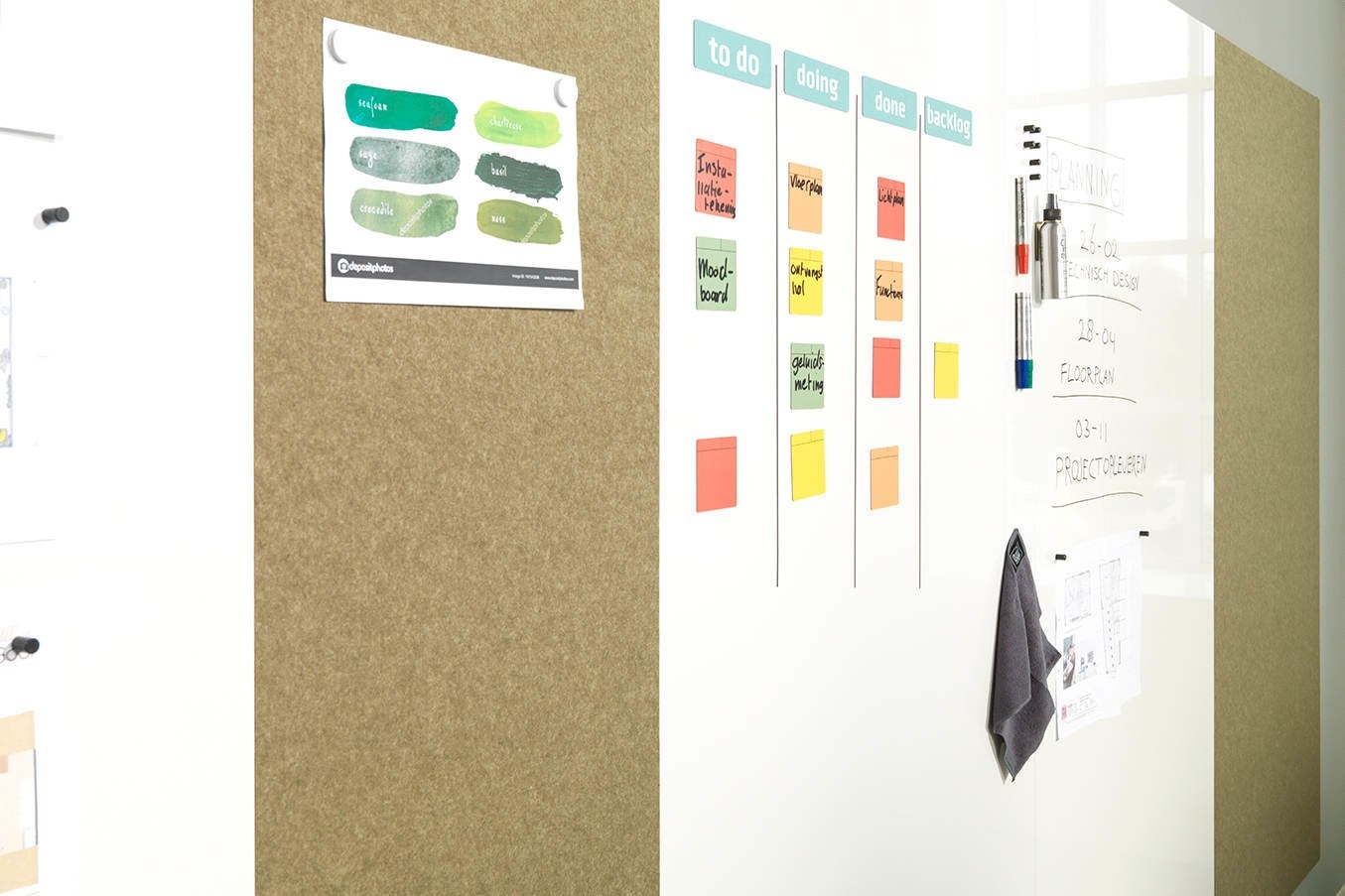 Hele panelen in dezelfde maten als Modular Whiteboards: 198x98 cm en 118x88 cm