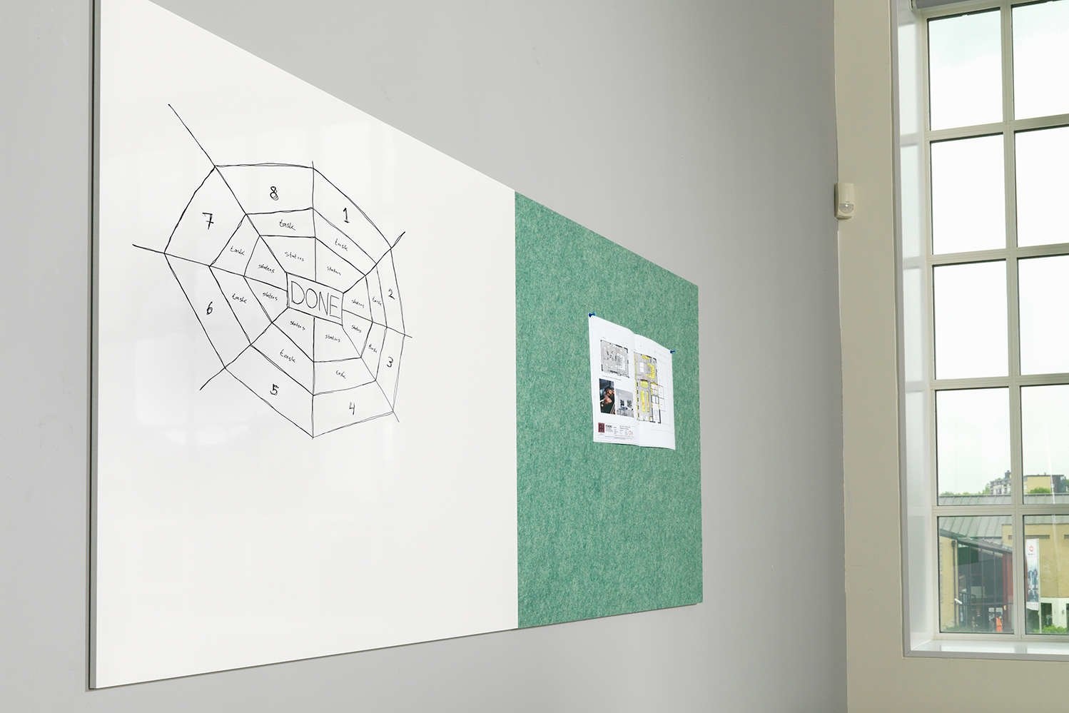 Halve panelen ten opzichte van Modular Whiteboards: 198x49 en 118x44 cm