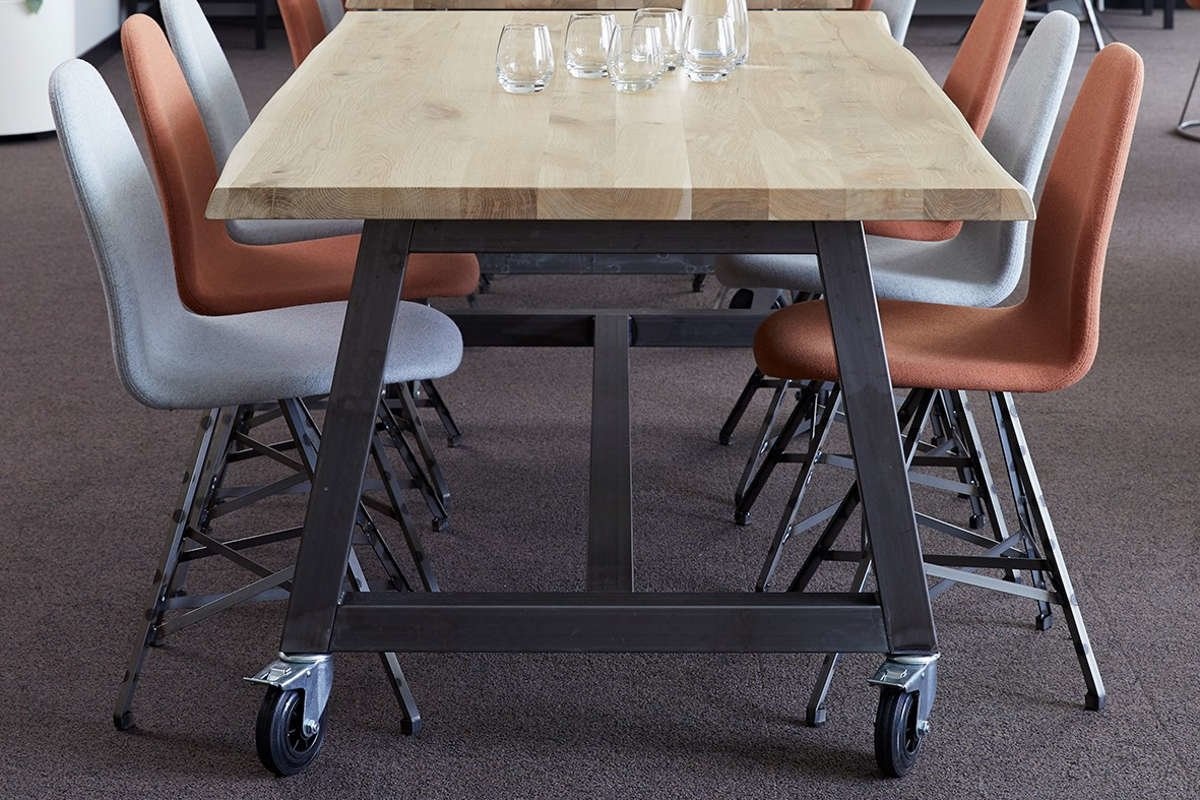 Omdat de tafel ter verrijden is, kunt u er vele kanten mee op. Zo plaatst u de Spoinq Bo tafel in een vergaderruimte of in een bedrijfskantine. Heeft u meer ruimte nodig? Dan verplaatst u eenvoudig de tafel naar een andere plek.