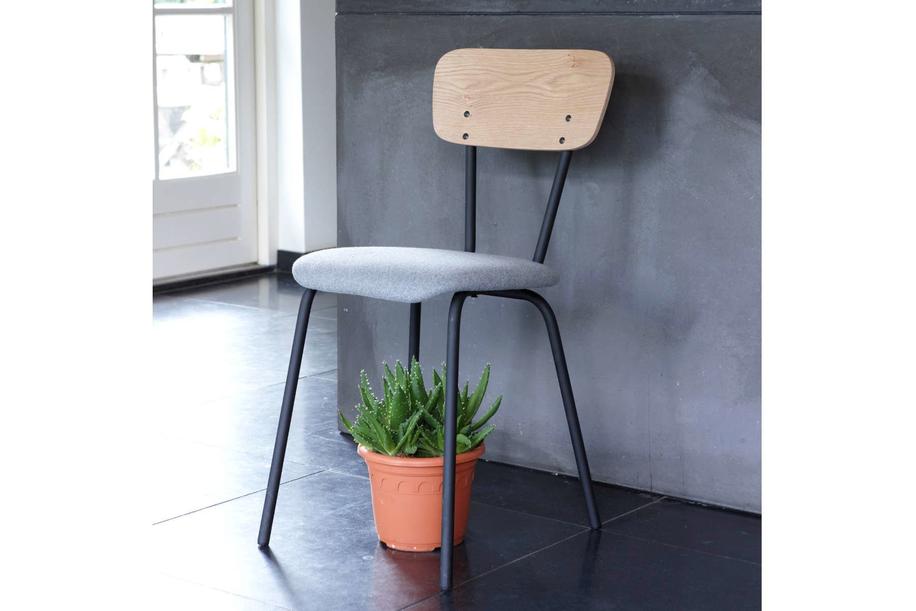 De gestoffeerde zitting is te bekleden uit de stoffencollecties van Spoinq en Kvadrat. Eigen stoffen zijn ook, na overleg, mogelijk.