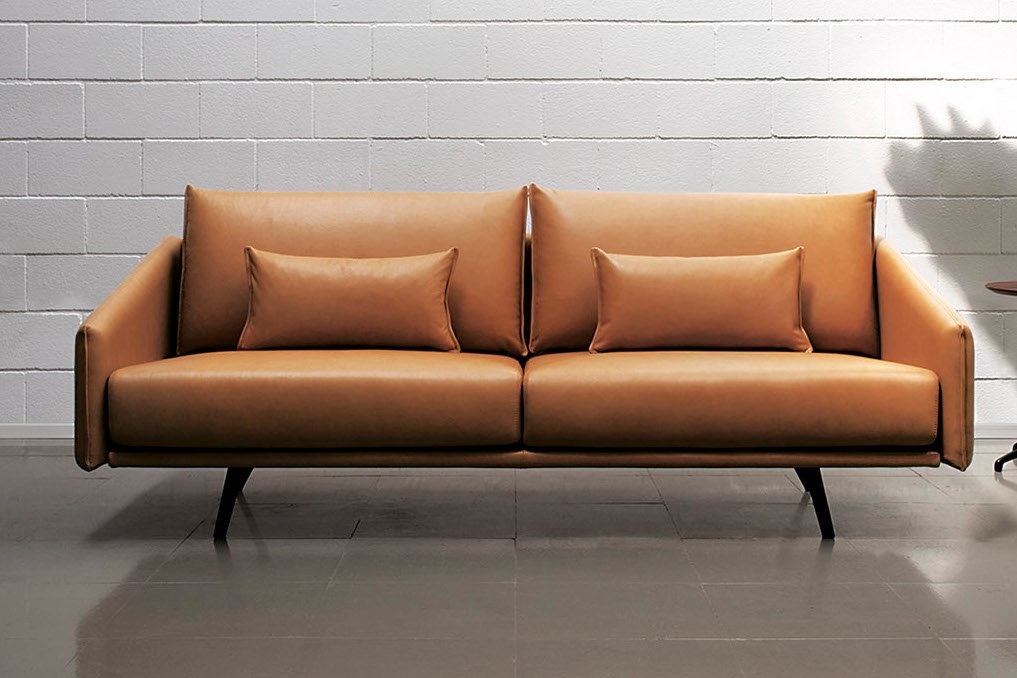 De bank kan zowel een stoffen als lederen bekleding hebben.