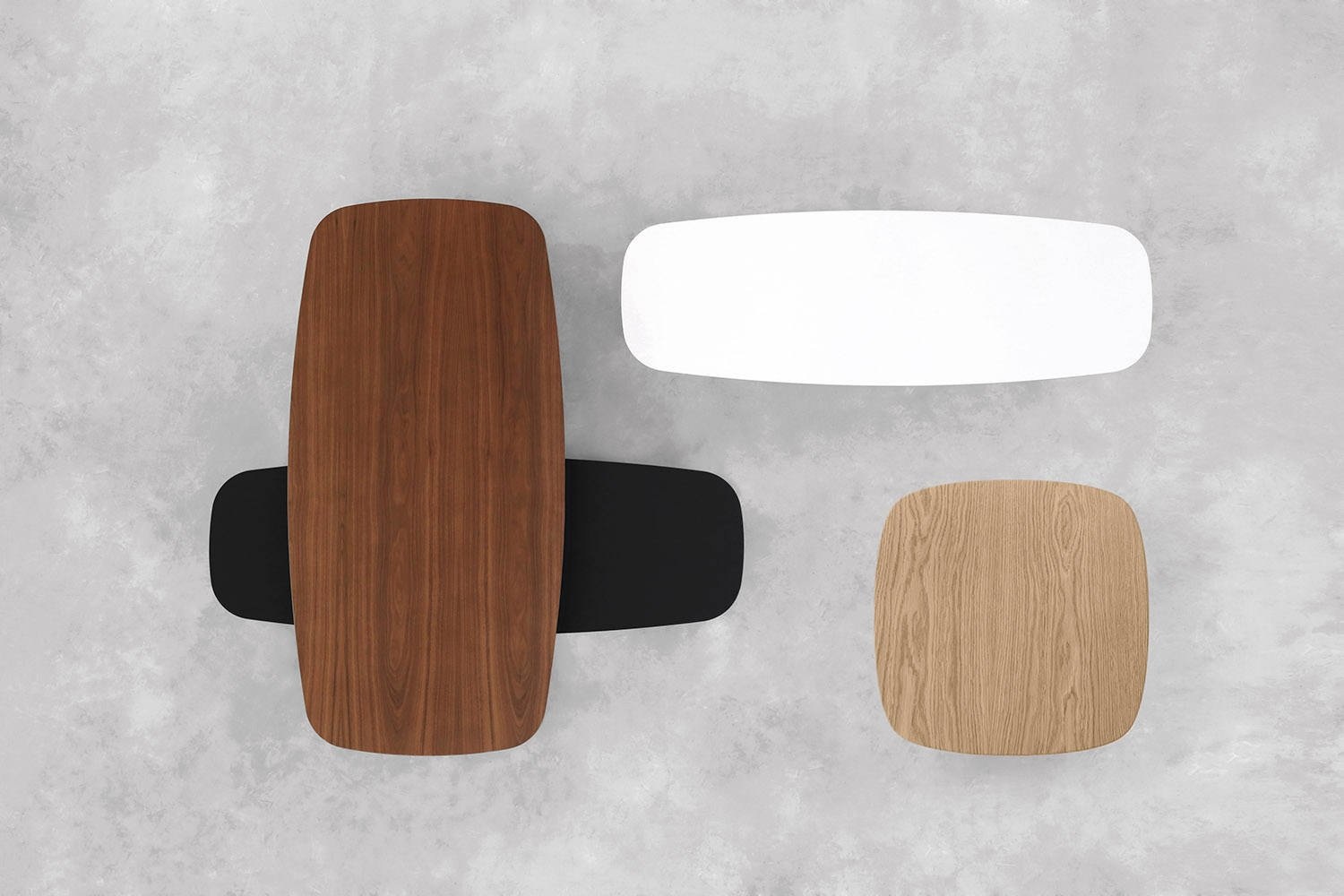 Voor het Solapa tafelblad zijn 4 afwerkingen beschikbaar: white, oak, walnut of black Fenix.