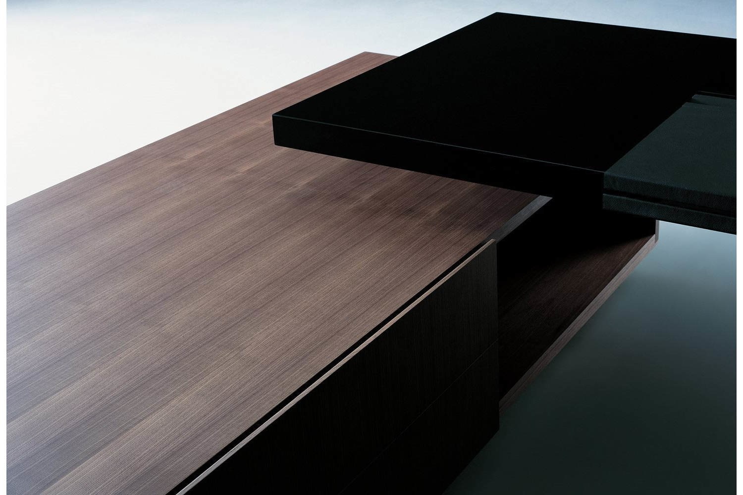 Piero Lissoni is de ontwerper van de Tecno Asymmetrical. De tafels kunnen gecombineerd worden tot grote werkplekken, vergadertafels of bureaus waar alles direct bij de hand te vinden is. De bureaus en vergadertafels zijn verkrijgbaar in een keuze van de combinaties en afmetingen. De werkbladen van de Tecno Asymmetrical kunnen worden afgewerkt in mat of glanzend wit en donker grijs gelakt of in lichte, medium of donker eiken, grijs en donkerbruin. De vergadertafels kunnen worden gelakt in hoogglans wit en donker grijs of mat wit en donkergrijs.