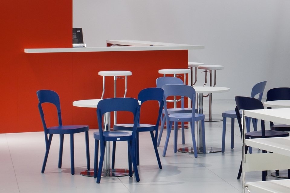Thonet 107 stoel is bijzonder geschikt voor de inrichting van restaurants en café's vanwege de elegante, solide en lichte uitstraling. Door zijn eenvoudige vormgeving past de stoel ook goed in uw eethoek thuis. Thonet 107 heeft een massief houten frame, zonder armleuningen, zitting en rugleuning van voorgevormd multiplex in beuken naturel of gebeitst. Zitting van hout of gepolsterd en voorzien van stoffen of lederen bekleding. Met glijders voor harde en zachte vloeren.