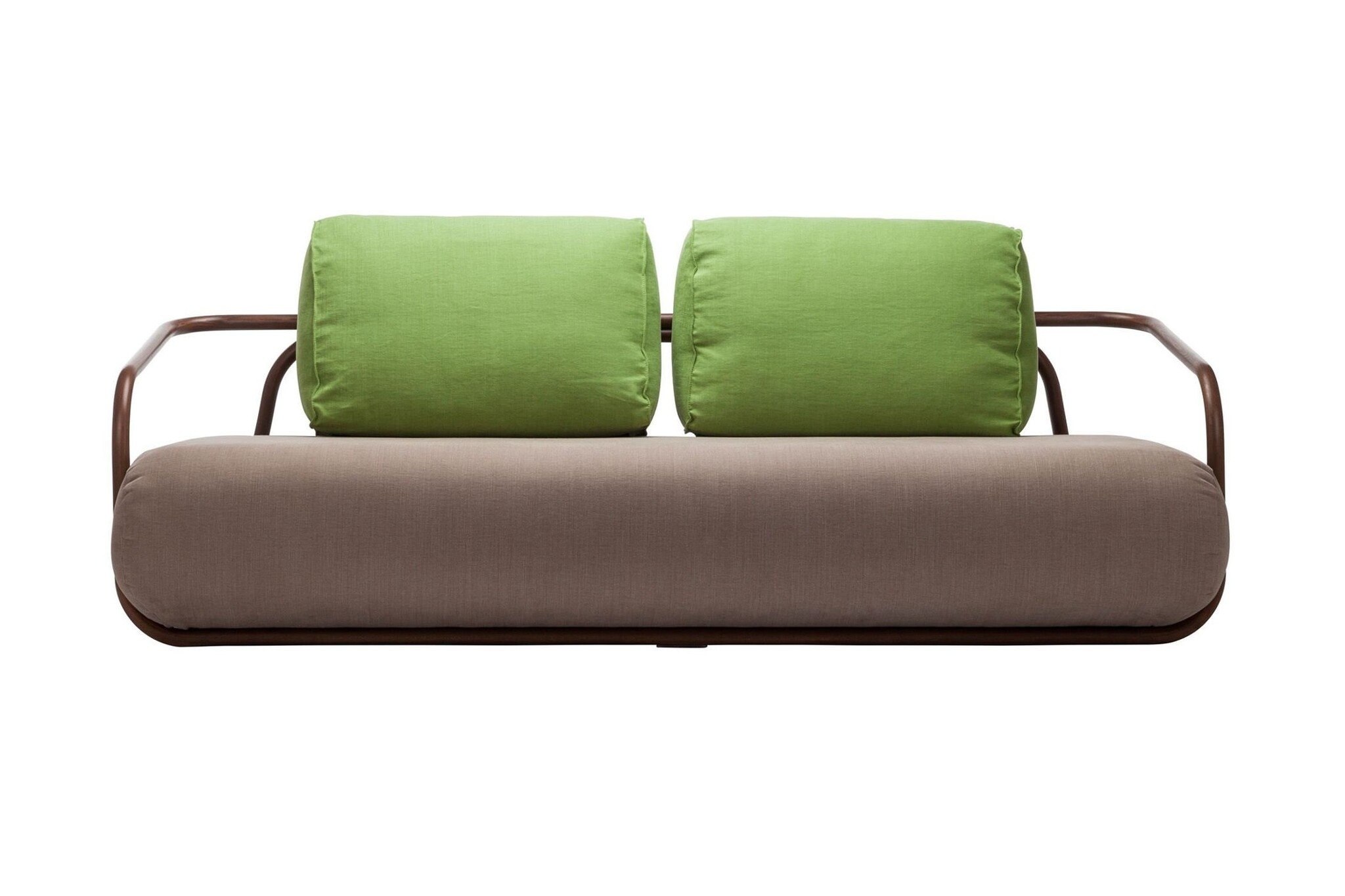 Bank van gebogen hout (2002/C002 inclusief 2 rugkussens 2011 en 2 zijkussens 2012):
