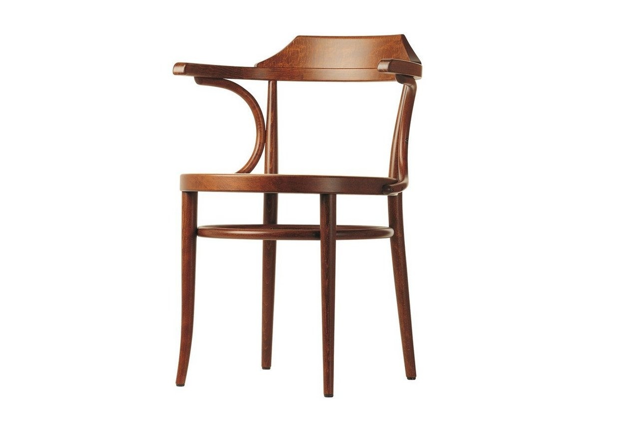 De Thonet 233 stoel is één van de klassiekers van Thonet. In één oogopslag lijkt het een simpele maar sierlijke stoel. Bij nadere beschouwing worden de verschillende details zichtbaar. De rugleuning is breed, en daar zitten de armleuningen aan verwerkt die met gebogen hout weer aan de zitting verbonden zijn. De rug- en armleuningen geven stabiliteit maar zorgen daarnaast voor een zeker flexibiliteit waardoor de stoel comfortabel zit. Deze Thonet 233 stoel is leverbaar met een open rugleuning of met een rugelement. De zitting en rugleuning zijn leverbaar in webbing of van multiplex wat bekleed is met stof of leer.Kenmerken Thonet 233 stoel