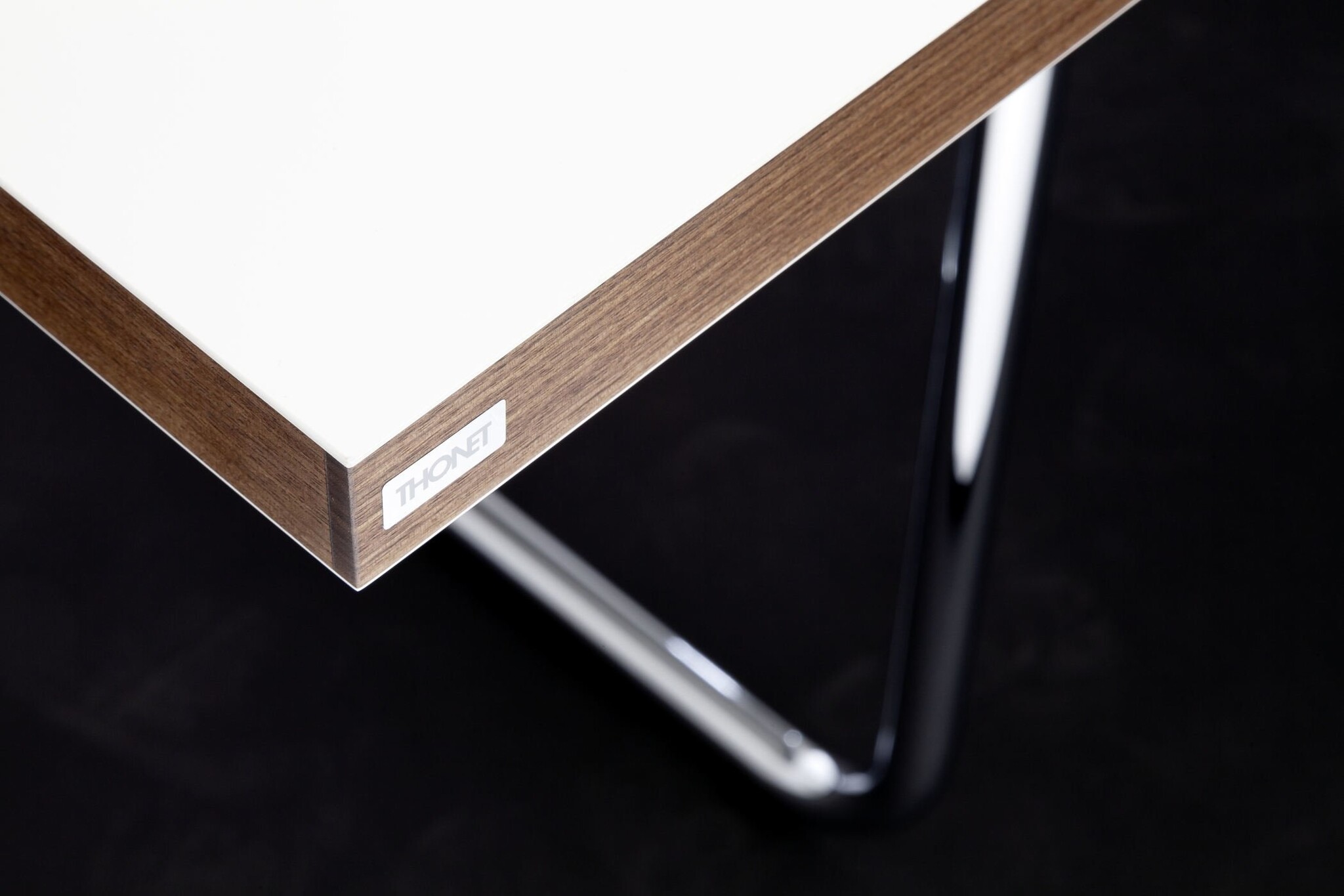 De Thonet S 1070 is een klassieke tafel met bijzondere details. Op het gebogen stalen buisonderstel rust een houten tafelblad. Met behulp van inlegbladen in diverse afmetingen kunnen de tafels Thonet S 1071 en Thonet S 1072 worden verlengd. Het stalen buisframe is verchroomd of gelakt. De tafelbladen zijn leverbaar in verschillende uitvoeringen.