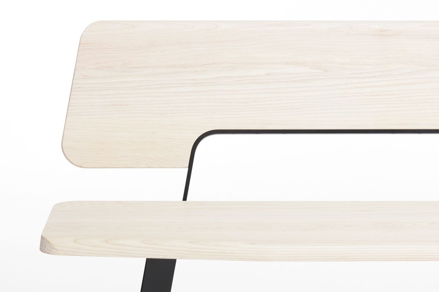 De bank is aan de kopse kanten voorzien van afgeschuinde kanten en afgeronde hoeken.