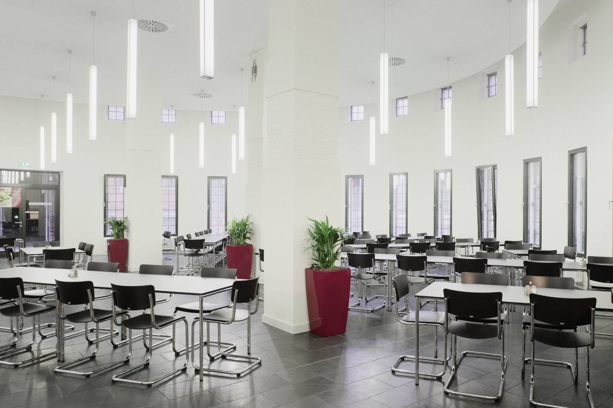 Thonet S43 ST: zitschaal van voorgevormd multiplex en stapelbaar sledeframe.