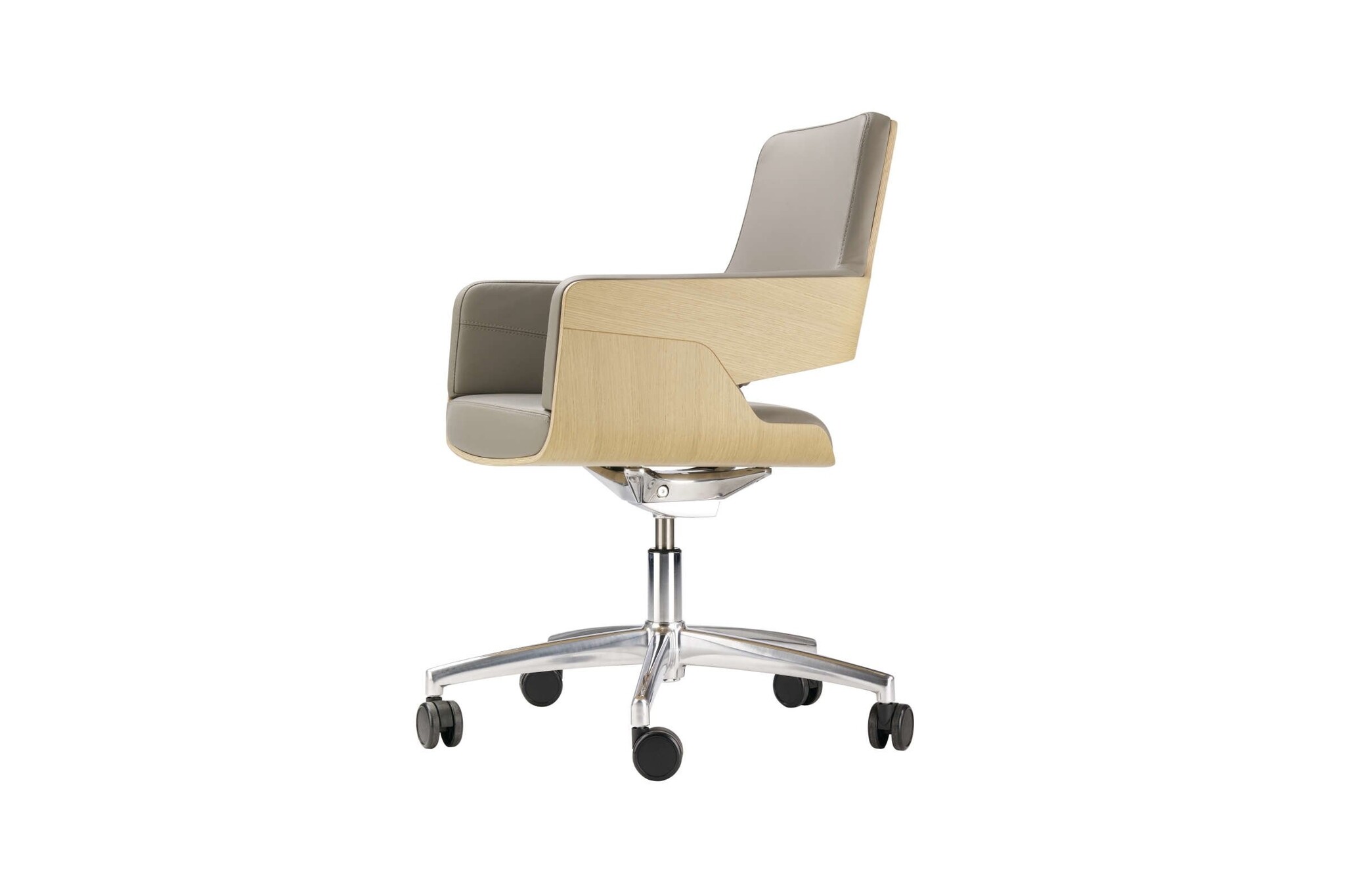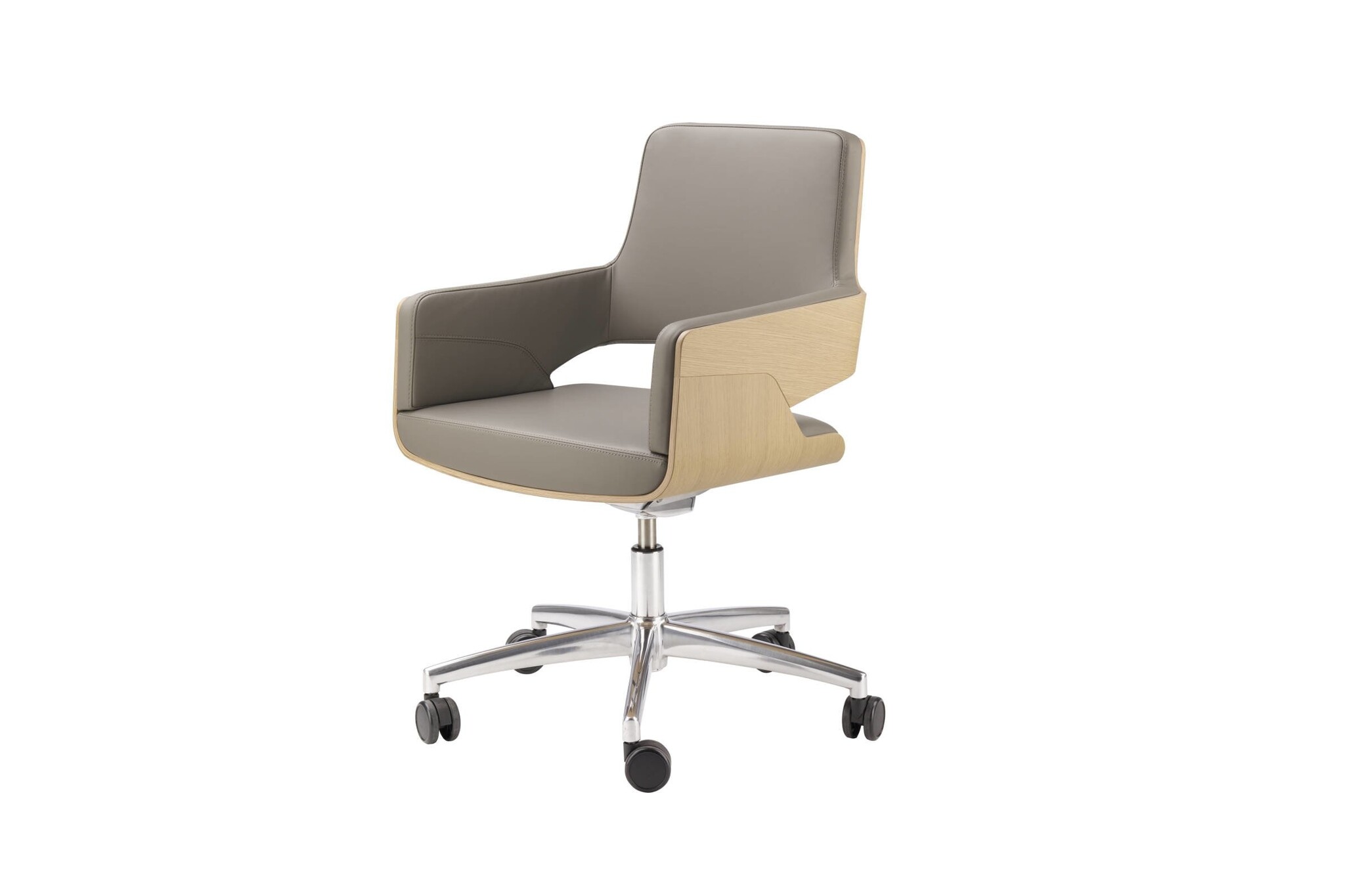 Het onderstel is leverbaar als draaibare kruisvoet met vier poten op glijders of als draaibare kruisvoet met vijf poten op rollen en met kantelmechanisme.