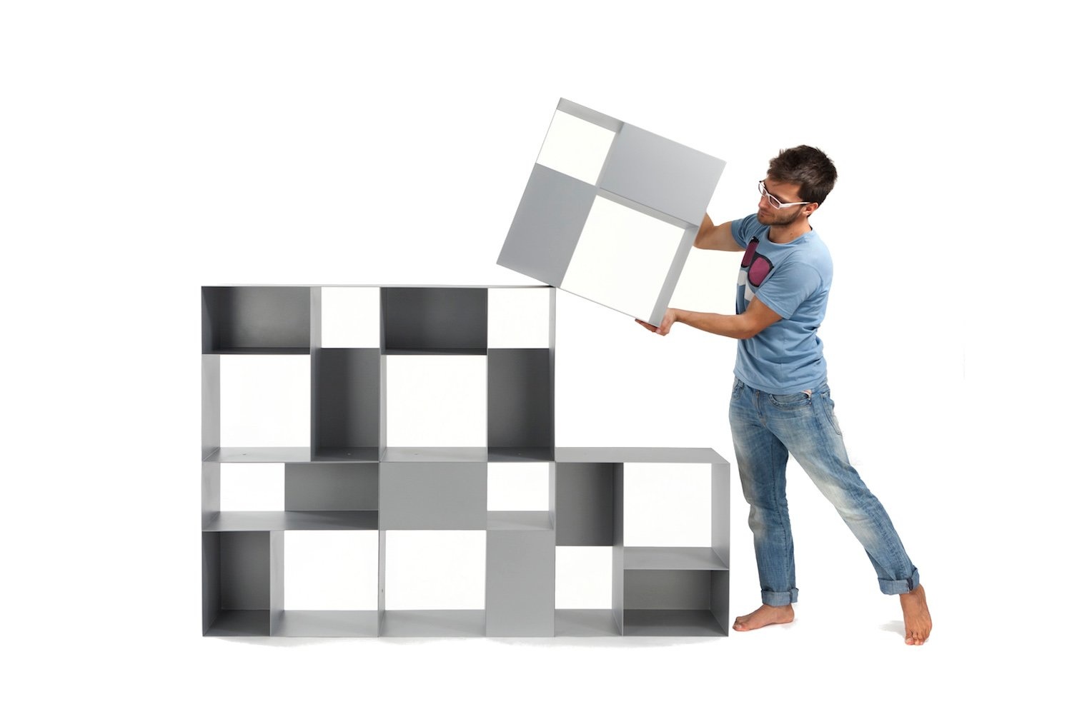 Trilogy Boxx is een modulair boekenkastsysteem en is geschikt voor op kantoor of voor in winkels. De stellingkast is volledig gemaakt van duurzaam gepoedercoat metaal. De kast bestaat uit verschillende blokken in verschillende afmetingen die samen één grote kast kunnen vormen. U kunt kiezen of u de blokken open wilt houden of dichtmaakt. Dit geeft een speels effect.