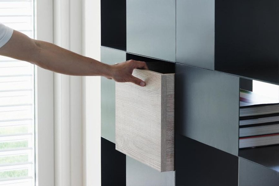 Door de diverse blokken op te bouwen tot een modulaire kast.