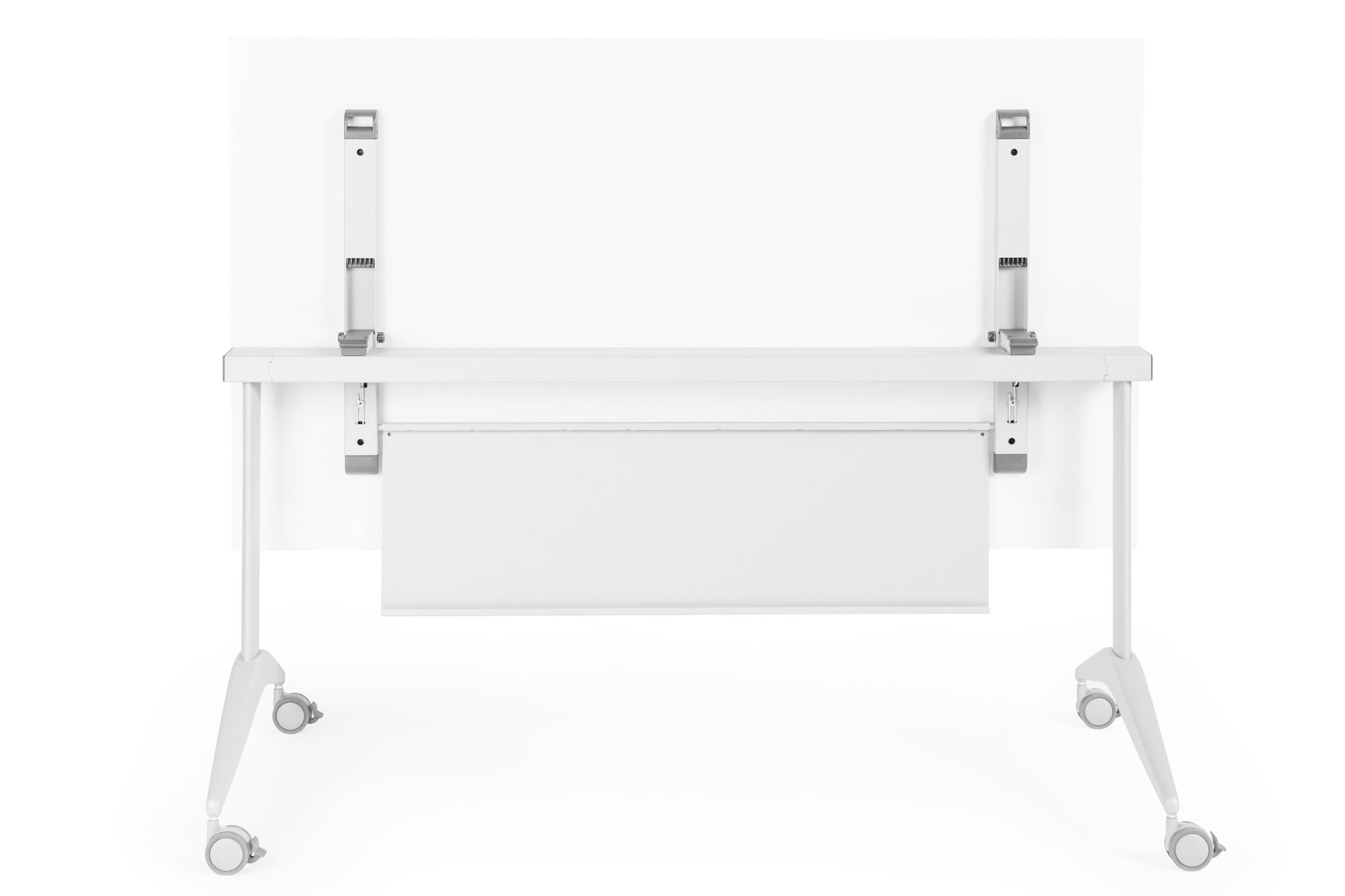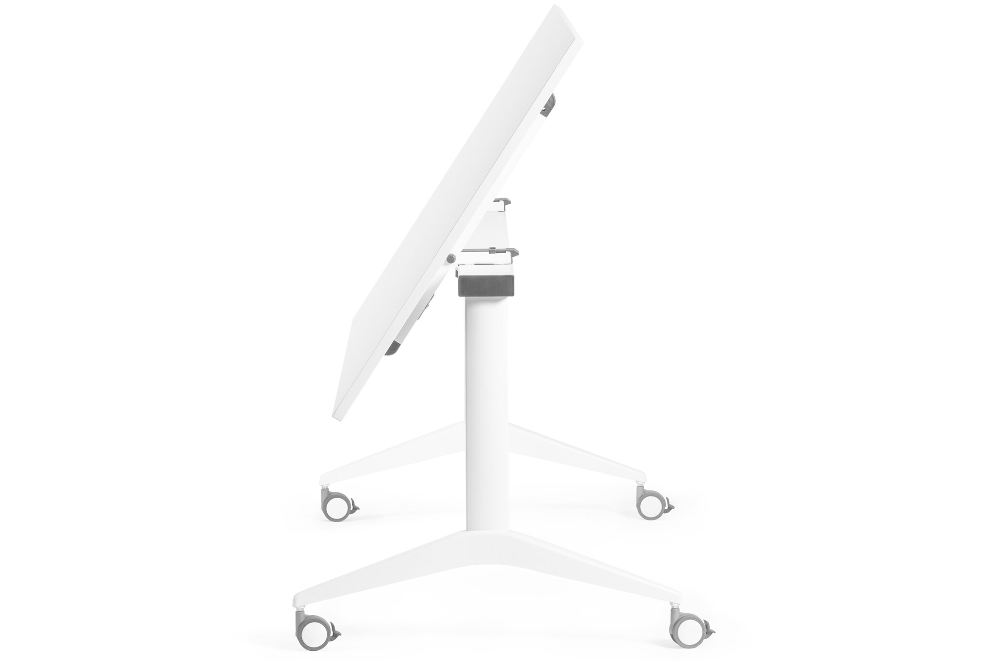 De Trilogy Faro is een kanteltafel met een handig systeem om het tafelblad gemakkelijk in verticale stand te zetten. Een slim, stevig en functioneel product, ontworpen voor kantoren en werkomgevingen waar ruimtebesparing nodig is. Het tafelblad kan ingeklapt worden in verticale positie voor compacte opberging wanneer het niet in gebruik is. De Trilogy Faro is voorzien van vergrendelbare wielen voor het gemakkelijk verplaatsen, zodat elk gewenste opstelling mogelijk is.
