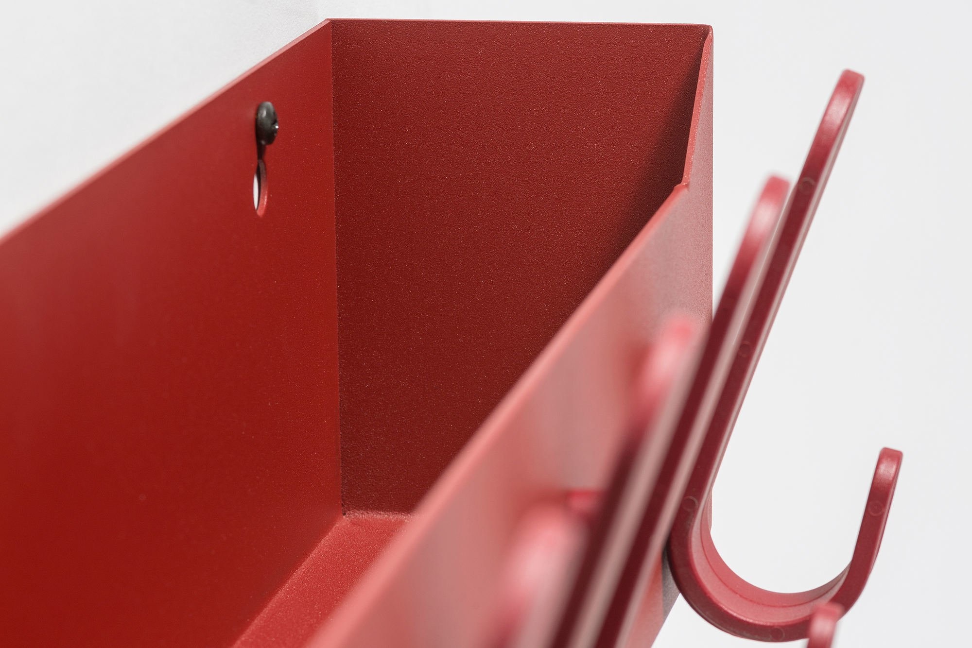 De Krok Box van Van Esch is lid van de Krok-familie. De kapstokken uit de Krok familie zijn eenvoudig maar essentieel en sierlijk. De Krok Box is ontworpen door Mia Lagerman en Ehlén Johansson, zij hebben deze kapstok ontworpen met maar één gedachte: terug naar de essentie. Dit model bestaat uit een wandkapstok en een opbergbox welke aan elkaar vast zitten. Dit zorgt dat er een handige plaats is voor spullen zoals sleutels, post of andere belangrijke zaken. Door deze manier van opbergen hoef je nooit meer last-minute op zoek naar bijvoorbeeld sleutels.Deze wandkapstok kan worden bevestigd op hout, steen of beton. Dit gaat door middel van twee zwarte schroeven welke standaard bij de Krok Box geleverd worden.De Krok Box is verkrijgbaar in zeven kleuren.