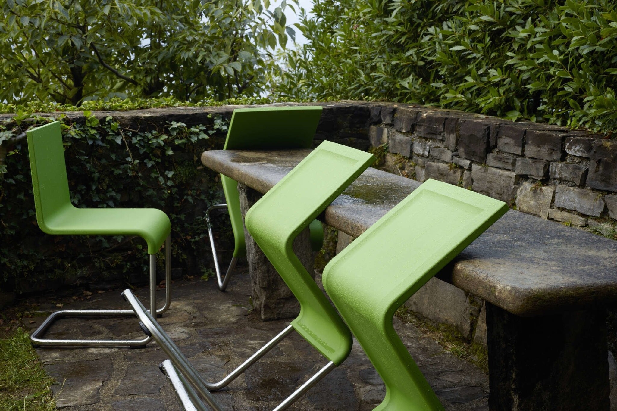 Deze Vitra .05 stoel kan ook buiten worden gebruikt.