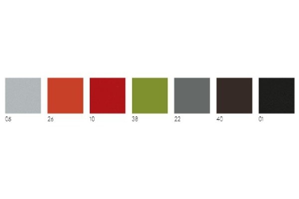 De zitschaal is leverbaar in de volgende kleuren: zwart, grijs, signaalrood, donkergrijs en donkergroen.