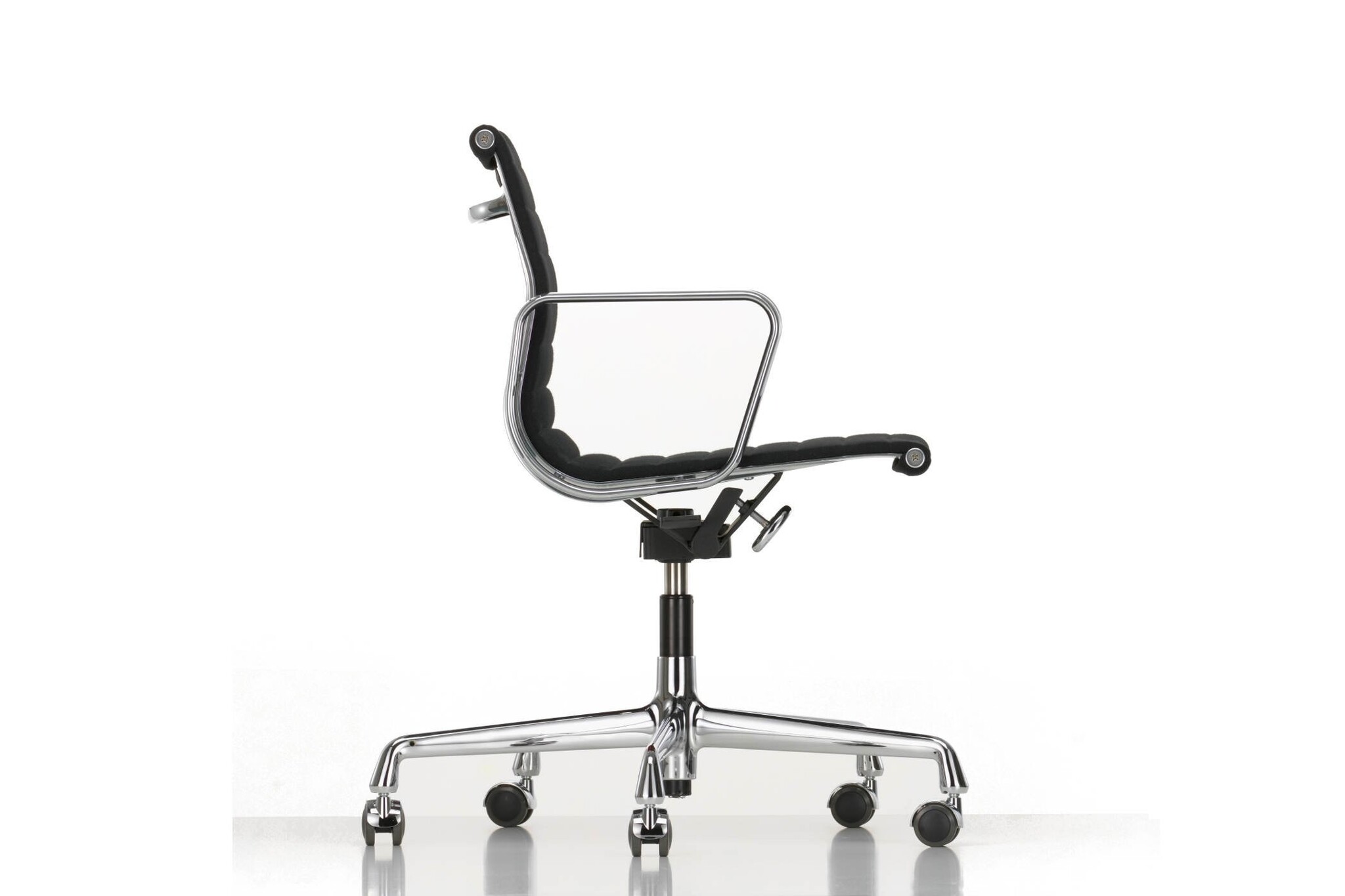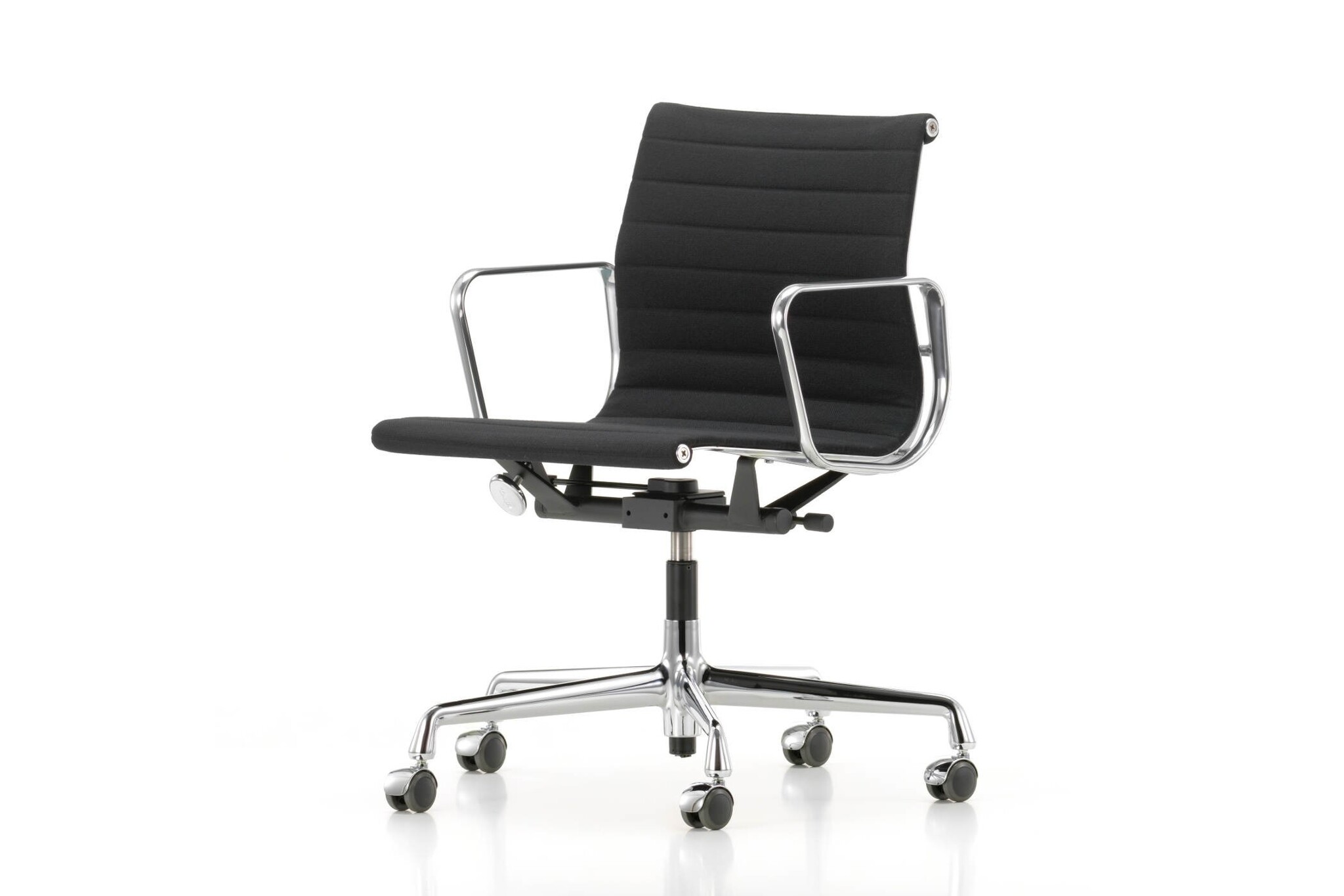 Onderstel: vijfsteronderstel van gepolijst of verchroomd spuitgietaluminium. Leverbaar met harde wielen voor tapijt of zachte wielen voor harde vloeren.