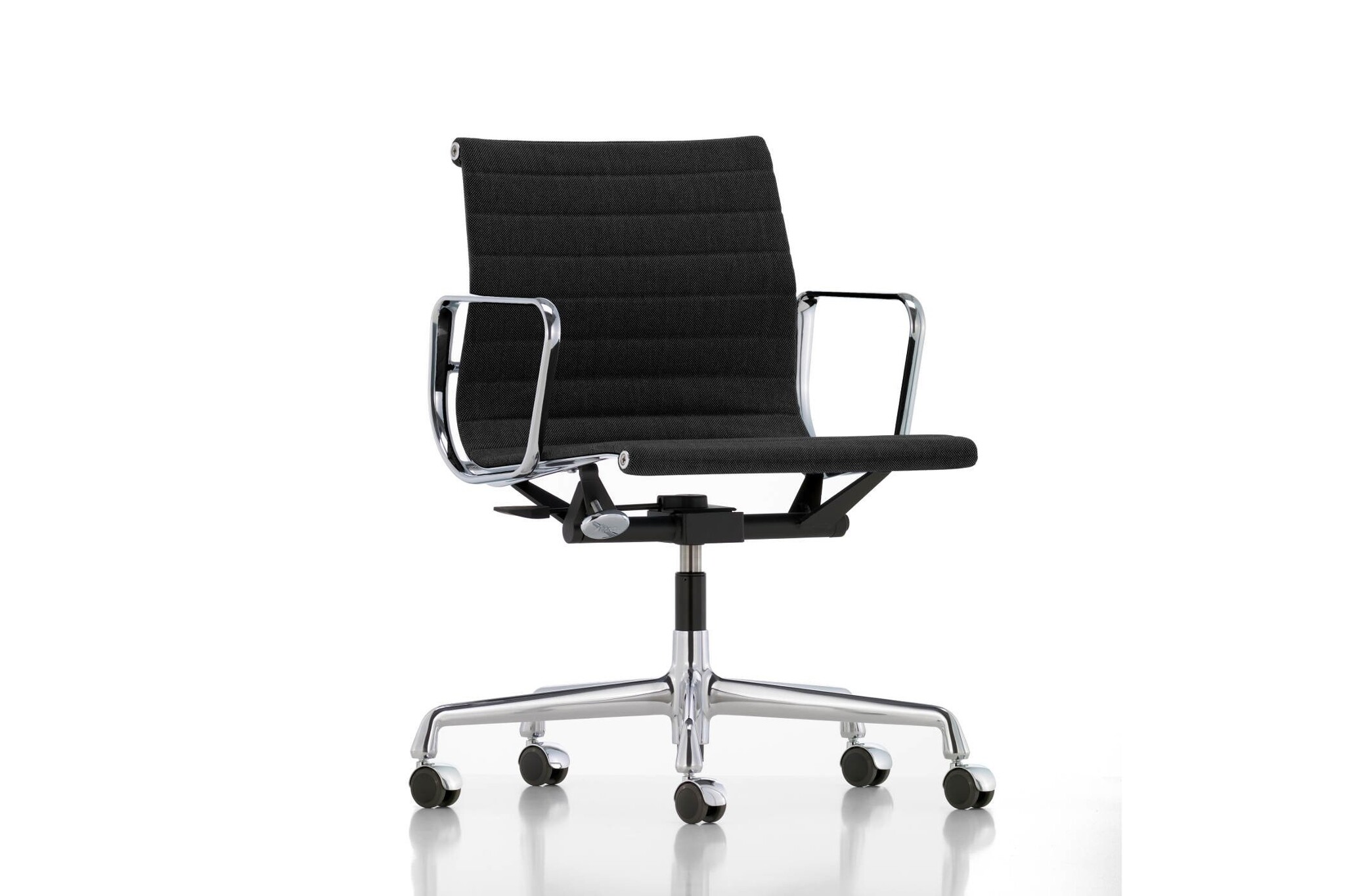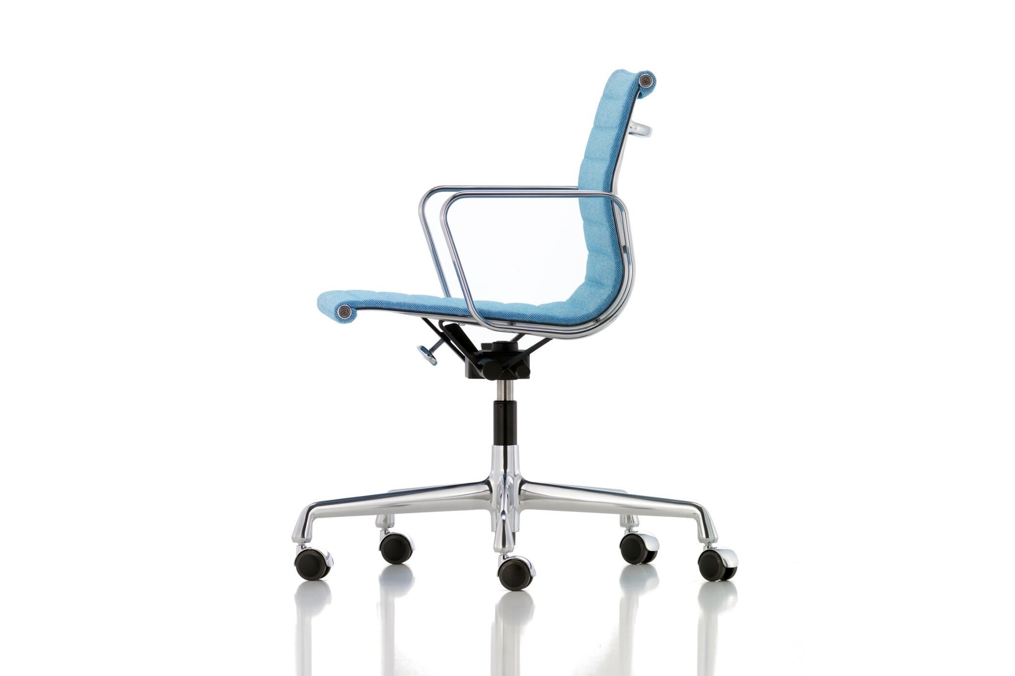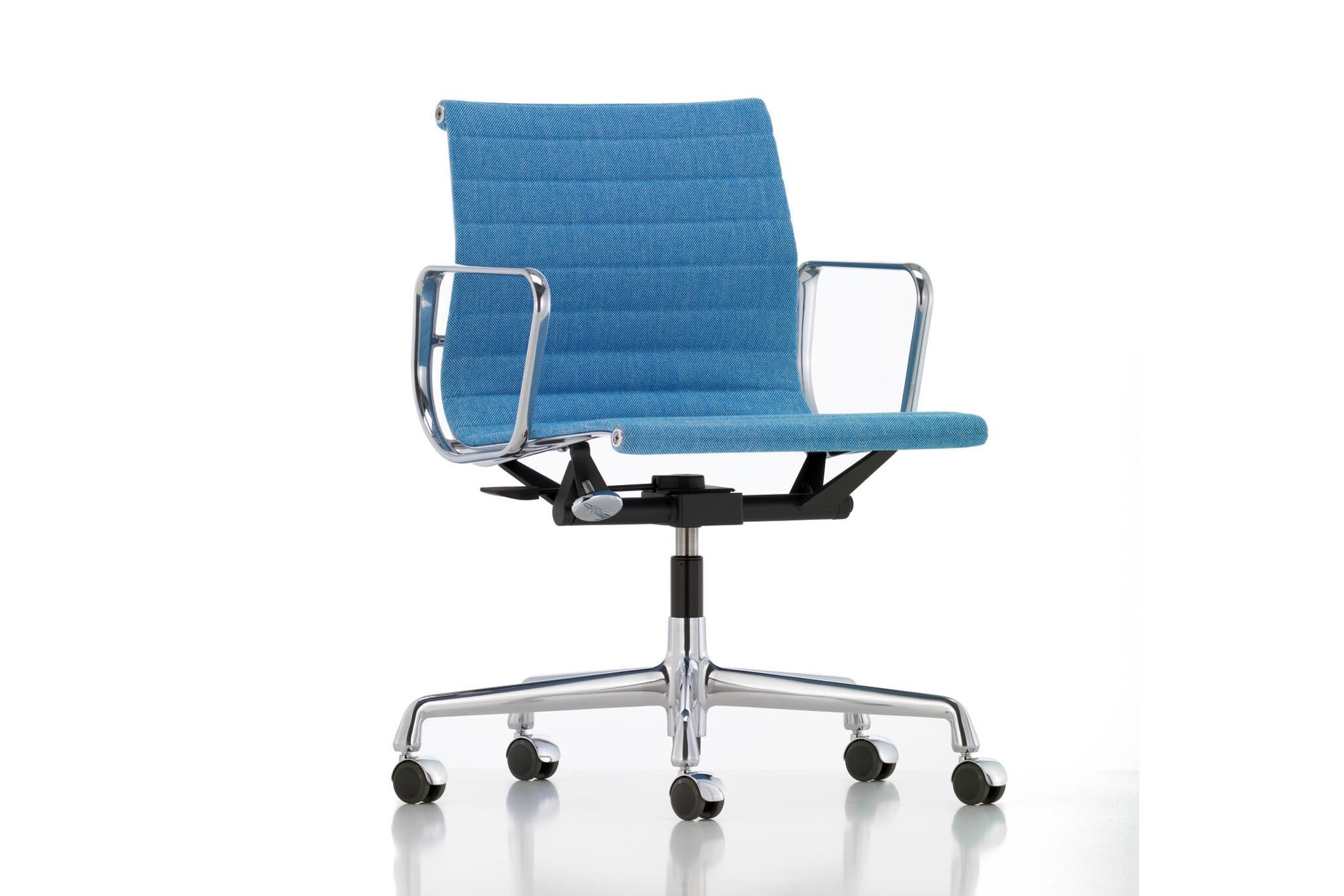 De Vitra EA 118 is een stoel uit de Aluminium Group van Charles en Ray Eames. Deze klassieke stoel is ideaal toe te passen als vergaderstoel. Doordat het kantelmechanisme is ingesteld op het gewicht van de gebruiker zit je uiterst comfortabel. De Vitra EA 118 stoel is voorzien van een smalle zitting. Hierdoor is deze ideaal toe te passen als vergaderstoel aan een vergadertafel.