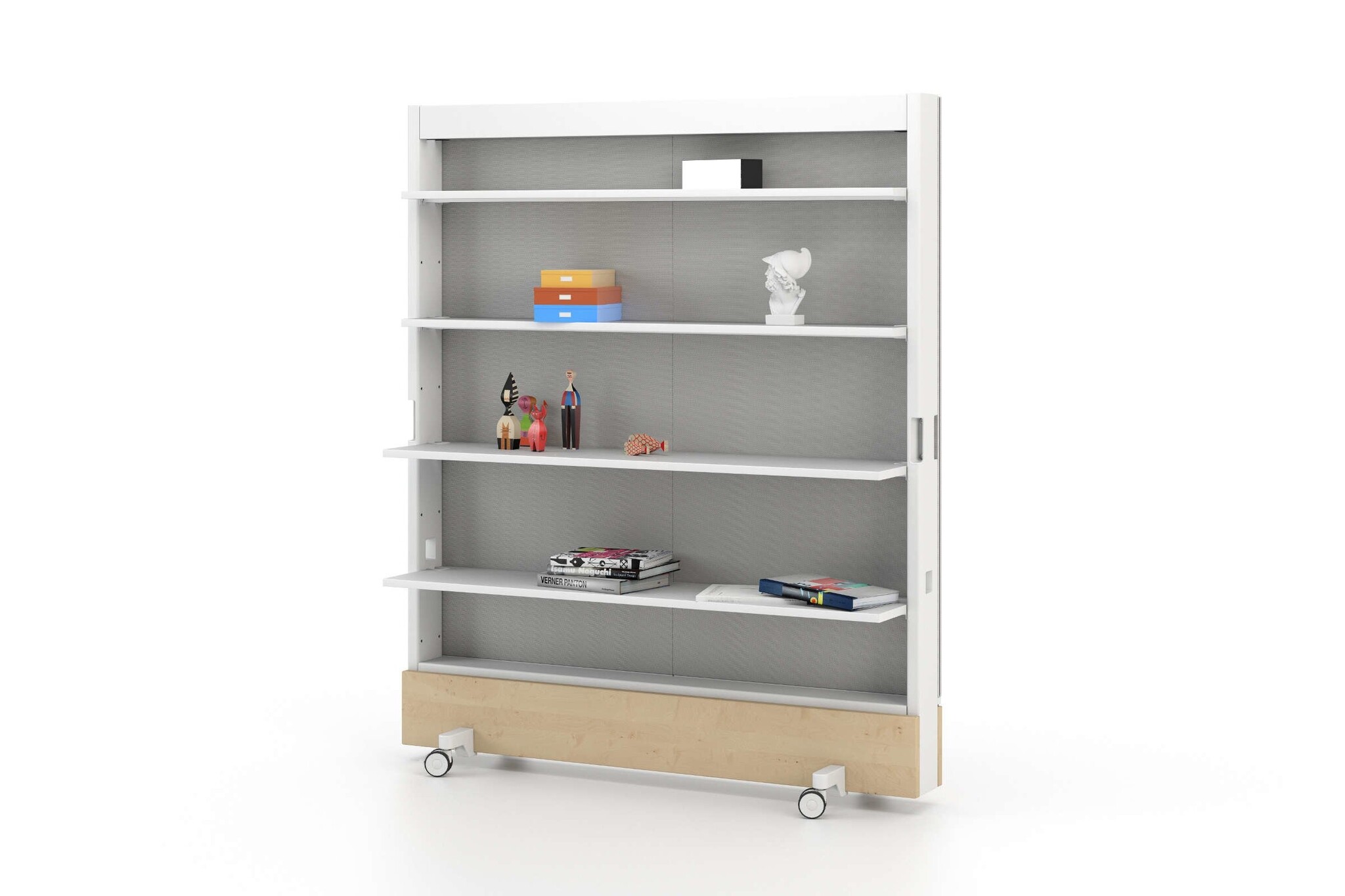 De Wall kan meerdere functies verrichten. Zo kunt u er een whiteboard of scherm in plaatsen voor presentaties op het kantoor, maar ook kunt u de wand inzetten als afscheidingsmuur met planten of als handige opbergruimte.