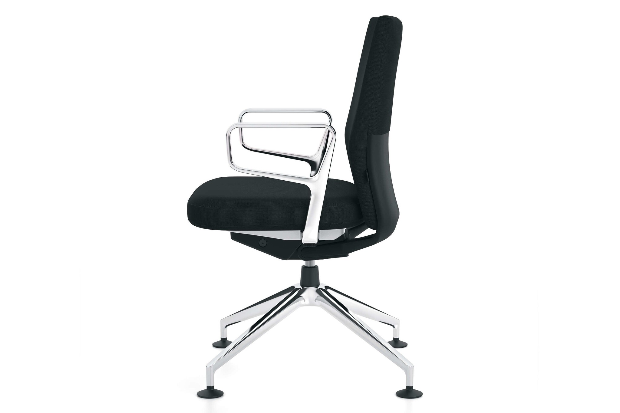 De Vitra ID Soft heeft een vijfsteronderstel van polyamide in basic dark of gepolijst persgietaluminium met zwenkwielen (ø 60mm) of glijders.