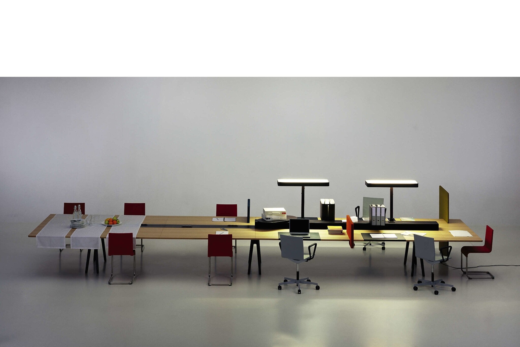 Deze Vitra Joyn tafel is veel meer dan een kantoormeubel. Vitra past hun collectie meubilair continu aan, aan nieuwe behoeften en technologieën. Op deze manier kan de dynamiek in moderne kantoren op een goede manier weergegeven worden. De ruimte die voor iedere werkplek voorzien wordt, is in principe flexibel. Vitra Joyn vergadertafel en werkplek
