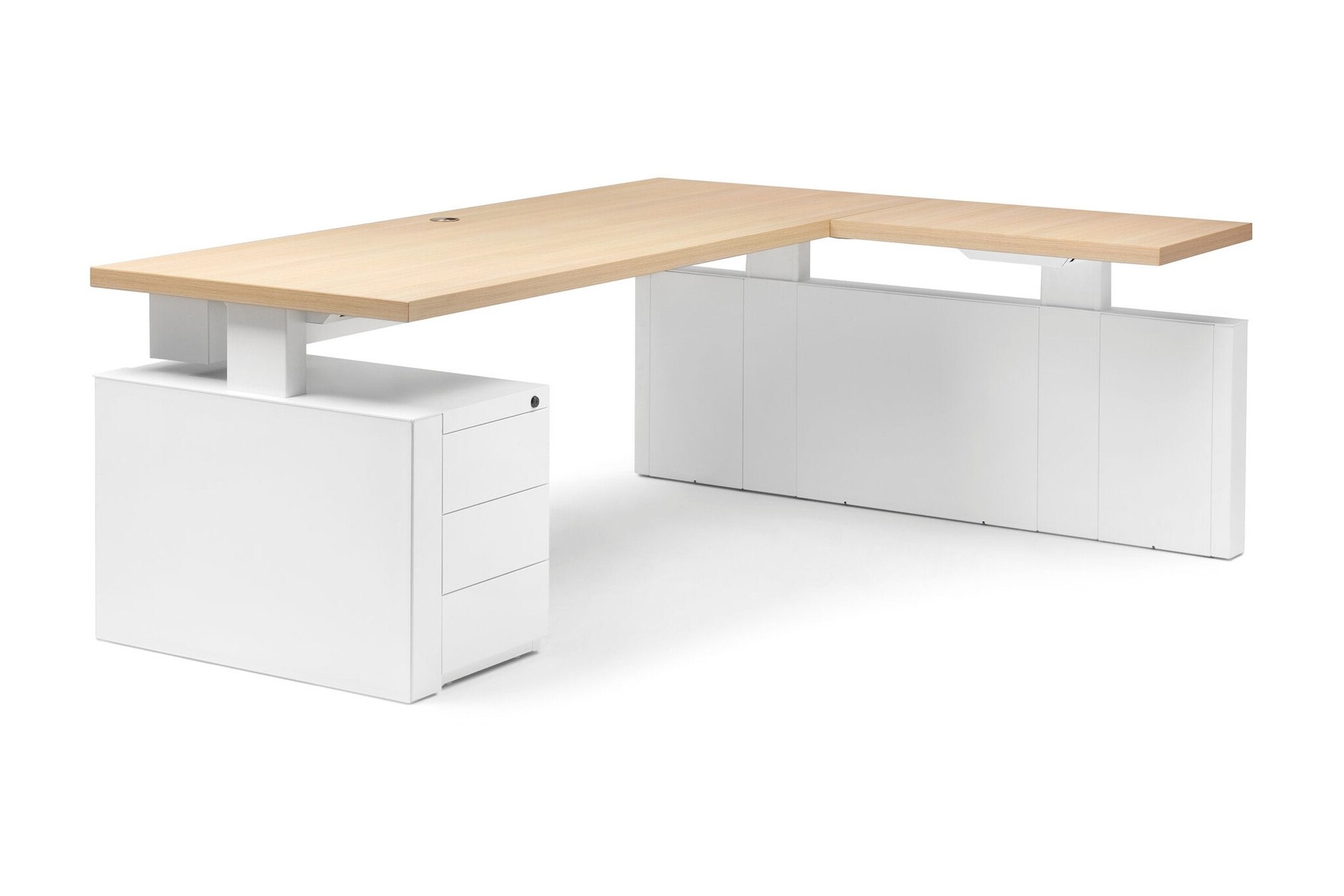 Voor vrijstaande, representatieve opstellingen combineert de kabelbox de opbergfunctie van bekabeling en stekkerdozen met visuele afscherming.