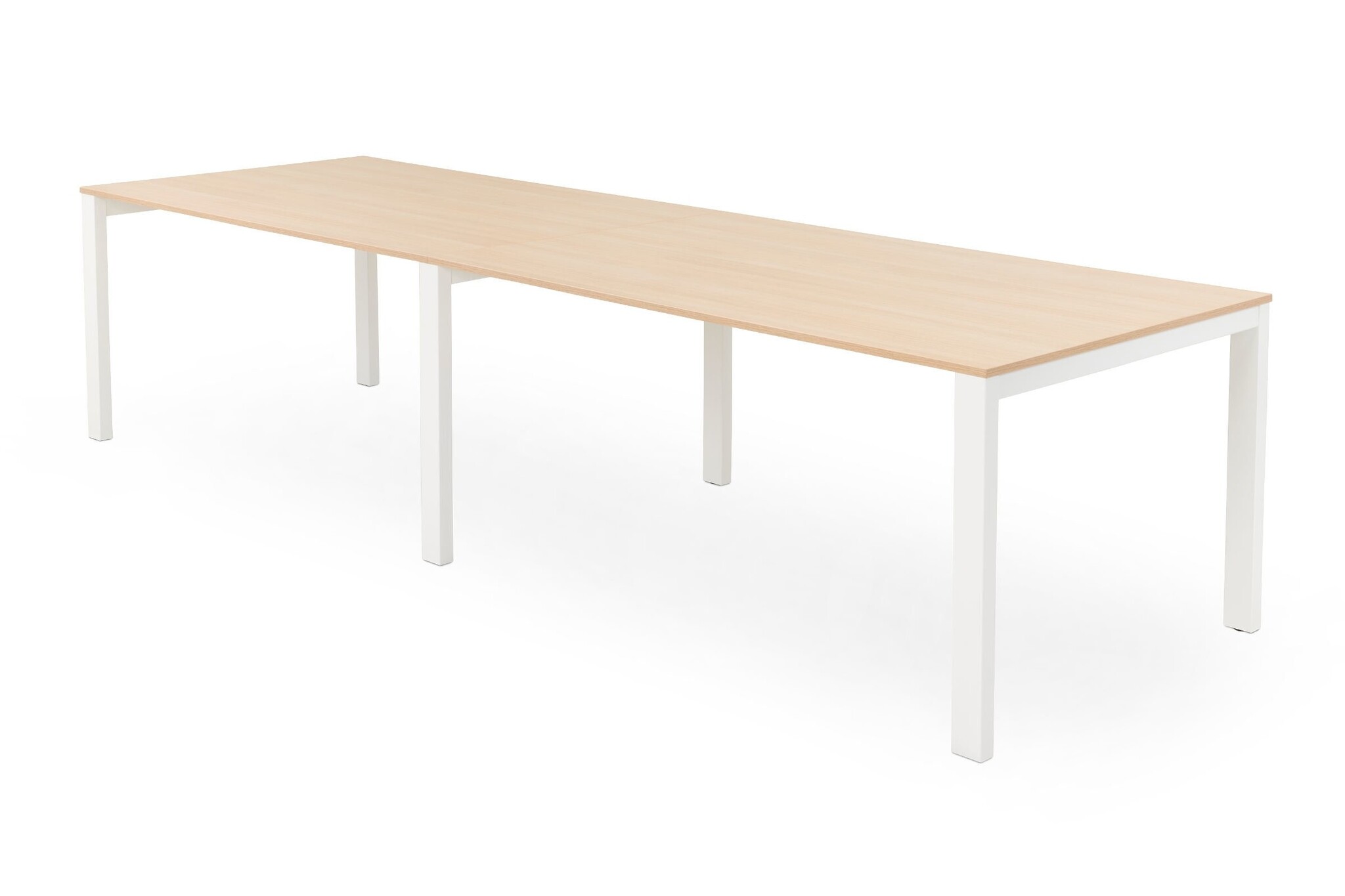 Het blad word ondersteund door een stalen traverse met twee gelaste poten (pootkolom 70 x 40 mm) hierdoor ontstaat er een open vierpootoplossing met geïntegreede bladdrager. Bij een teamtafel worden de twee bladen in het midden ondersteund door een paar poten.