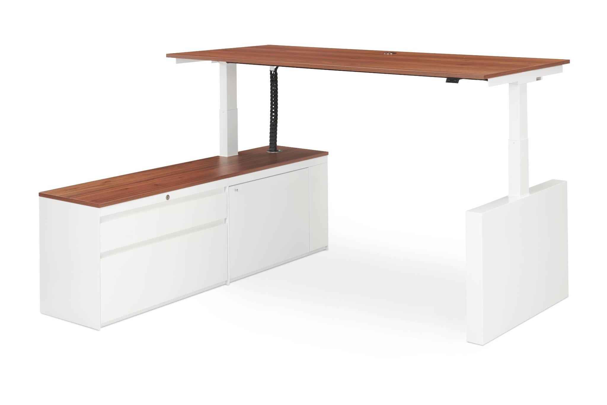 De werkplekken worden uitgevoerd met hoogte in- en hoogte verstelbare poten. Door middel van een display met hoog-laag bediening welke is weggewerkt in of onder het werkblad kan de tafel bedient worden. Het versteltraject is 65 - 130 cm en heeft een verstelsnelheid van 35 mm per seconde.