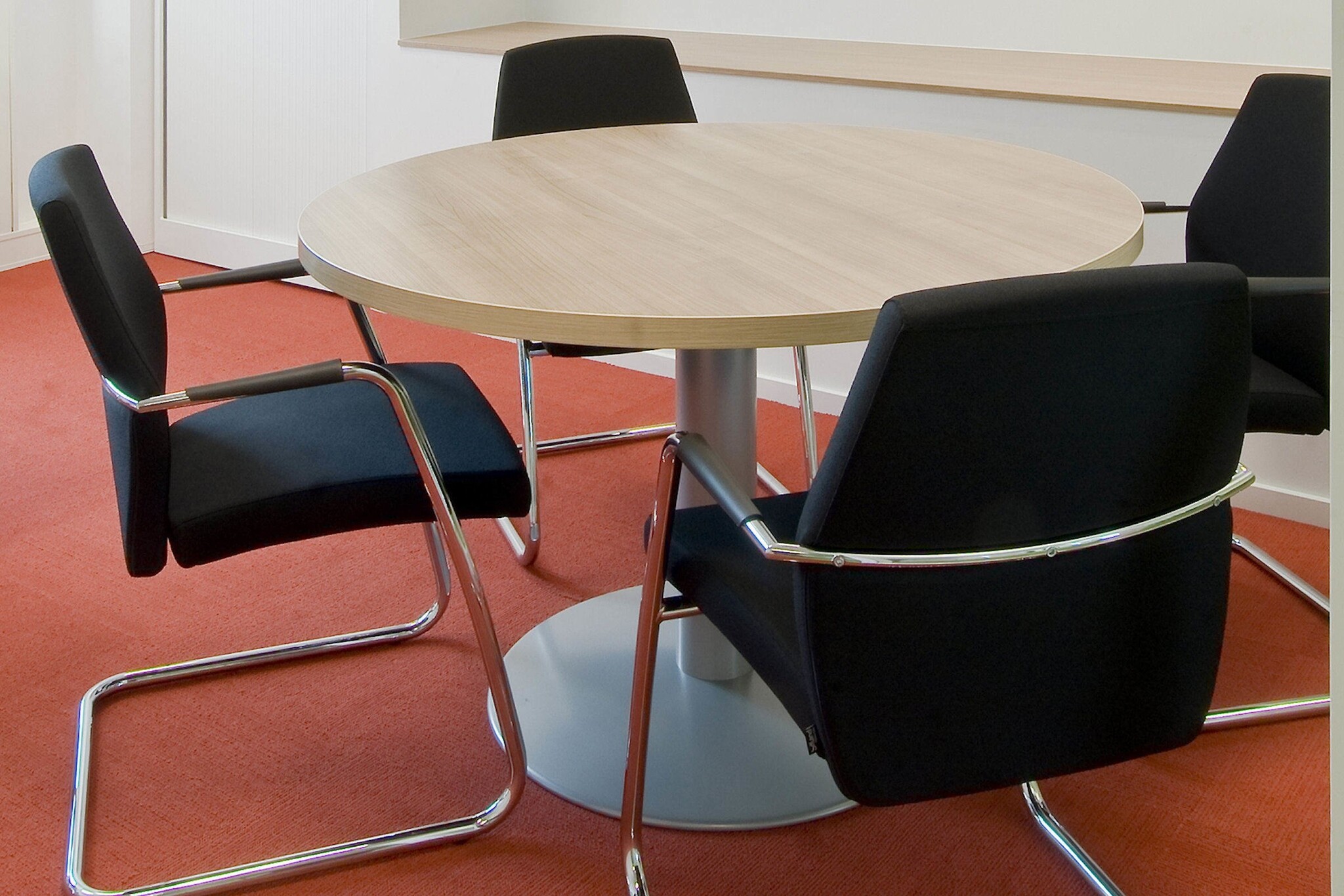 De kolomtafels zijn voorzien van een kolompoot welke gemonteerd wordt op een brede voetplaat.