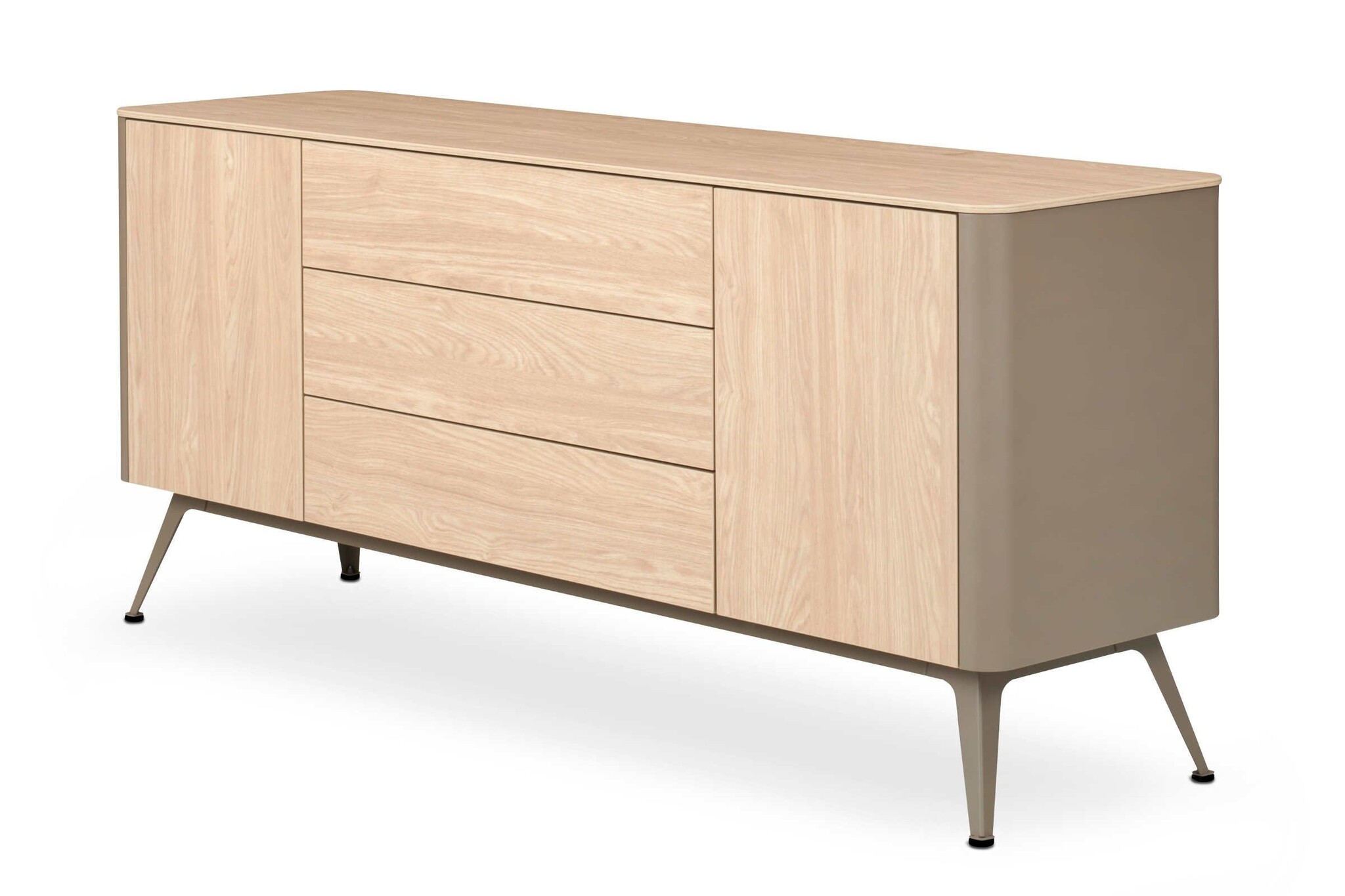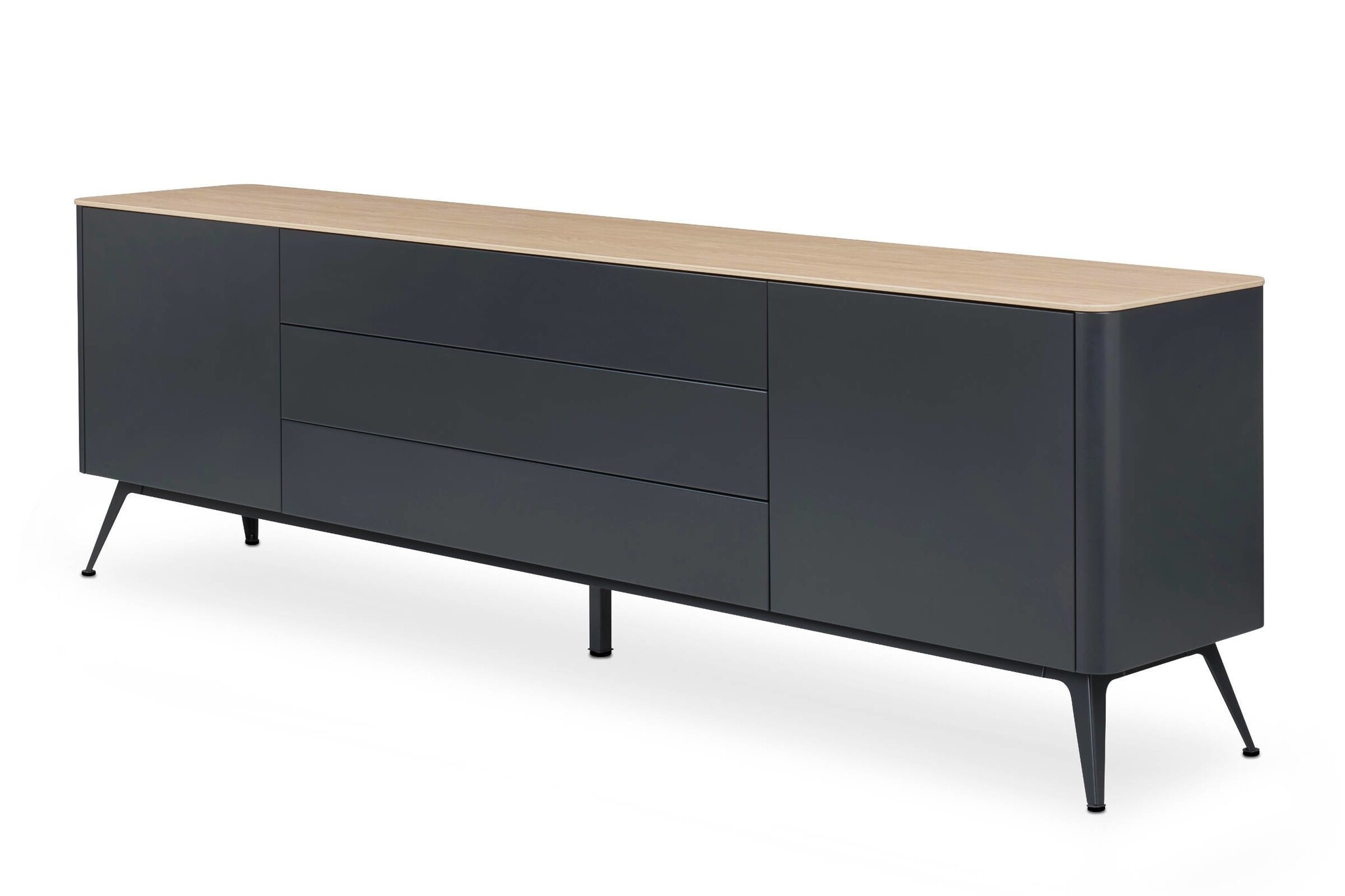 De indeling van het dressoir is naar keuze met deuren, laden of open vakken.
