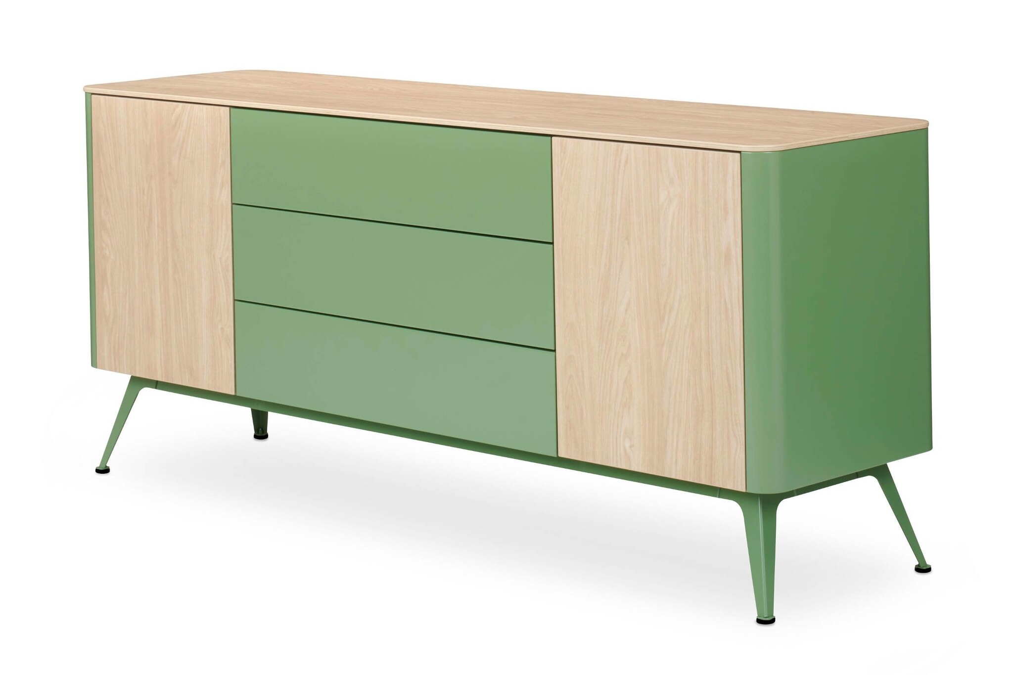 De draaideuren en ladefronten zijn naar keuze leverbaar in gelakt staal in 4 uni-kleuren, 4 metallic en 3 structuurlakken, HPL (High Pressure Laminate) of een combinatie van deze materialen. Het kastblad is standaard afgewerkt met HPL.