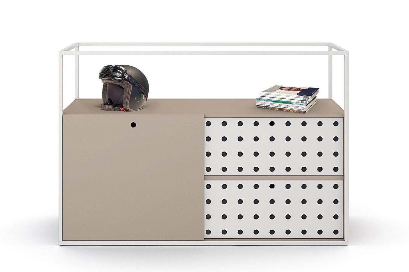 De Wiesner Hager Cage is een serie kasten, ontworpen door Neunzig Design, die de perfecte oplossing voor zowel opslag als het maken van verschillende zones in grote ruimtes. Ideaal als scheidingswandDeze serie kasten hebben tal van mogelijkheden en opties. De Wiesner Hager Cage is een echte eyecatcher en een lust voor oog in elke kantoorruimte. De kast is te gebruiken als opbergruimte maar ook als scheidingswand om bijvoorbeeld ruimten te creëren in een kantoortuin. Het Cage kastensysteem is uniek doordat de basis bestaat uit een stalen raamwerk. Hierop is ook de naam van deze kastenserie gebaseerd.