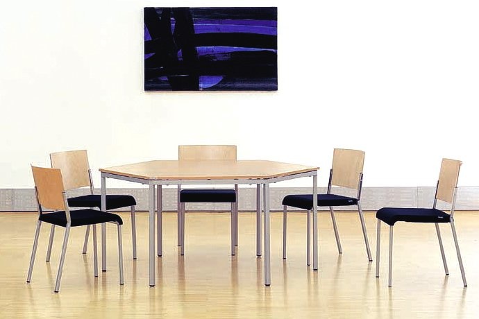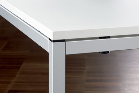Tafelbladen: Naar keuze melamine of HPL met ABS-rand, fineer met bladrand herlijst of volkern. ABS-rand met vochtbestendige PUlijm verlijmd. Houten oppervlakken gebeitst.