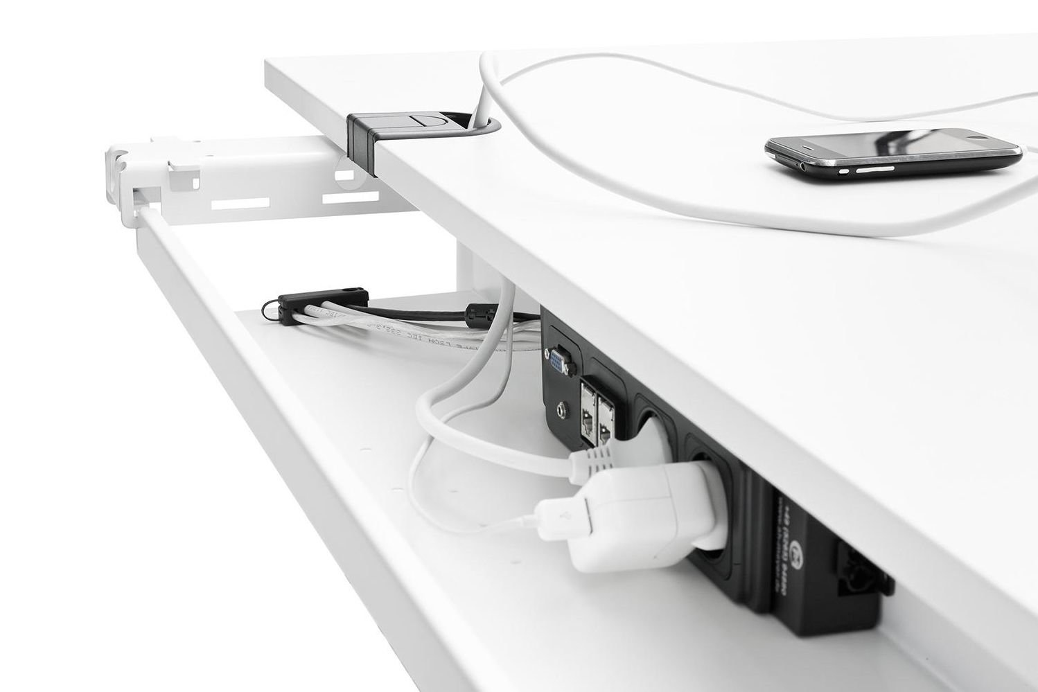 Toebehoren: Kabeldoorvoer hoekig, of rond / kabelkanaal staal, aan beide zijden neerklapbaar / PC-houder / kabelslang verticaal / frontscherm geperforeerd staal.