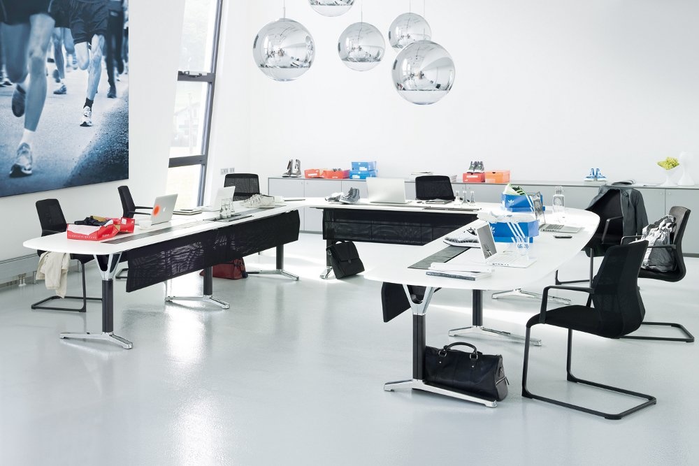 Bij de Wiesner Hager Pulse kan gekozen worden uit configuraties met verschillende onderstellen. Welke configuratie u ook kiest, de frames zorgen voor een verbindingsnaad van twee tafelbladen waarbij optimale beenruimte is mogelijk blijft.