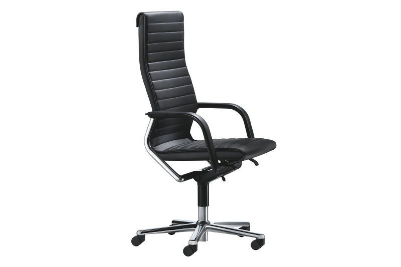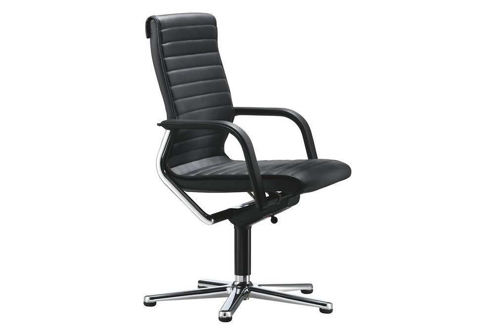 Wilkhahn FS Management bureaustoelen en vergaderstoelen met synchroon automaat. Door het verplaatsen van het lichaamsgewicht volgen zitting en rugleuning elke beweging vanzelf. Bij het achteroverleunen werkt de veerkracht progressief. Door middel van de veerkrachtregelaar is de veerkracht van de bureau- of vergaderstoelen traploos in te stellen. Werkstand fixeerbaar door middel van blokkeertoets. Traploze zithoogteverstelling door middel van een gasveer volgens DIN 4550.