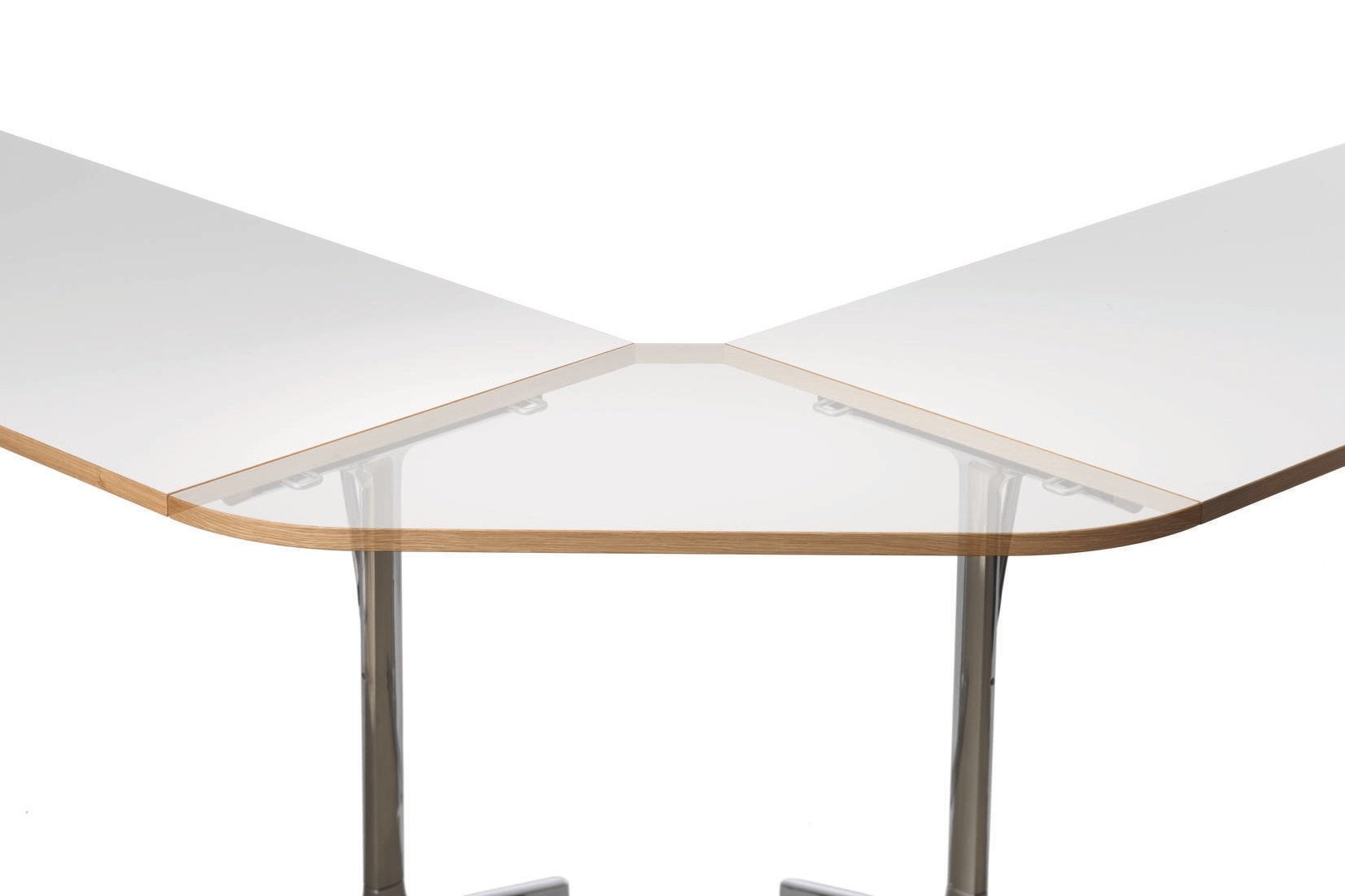 Vele tafelopstellingen mogelijk: met drie tafelvoeten, zes dieptes, acht breedtes, stand-alone en systeemtafels, die bladeren en tafels met elkaar verbinden in een rechte lijn of in een hoek worden geplaatst.