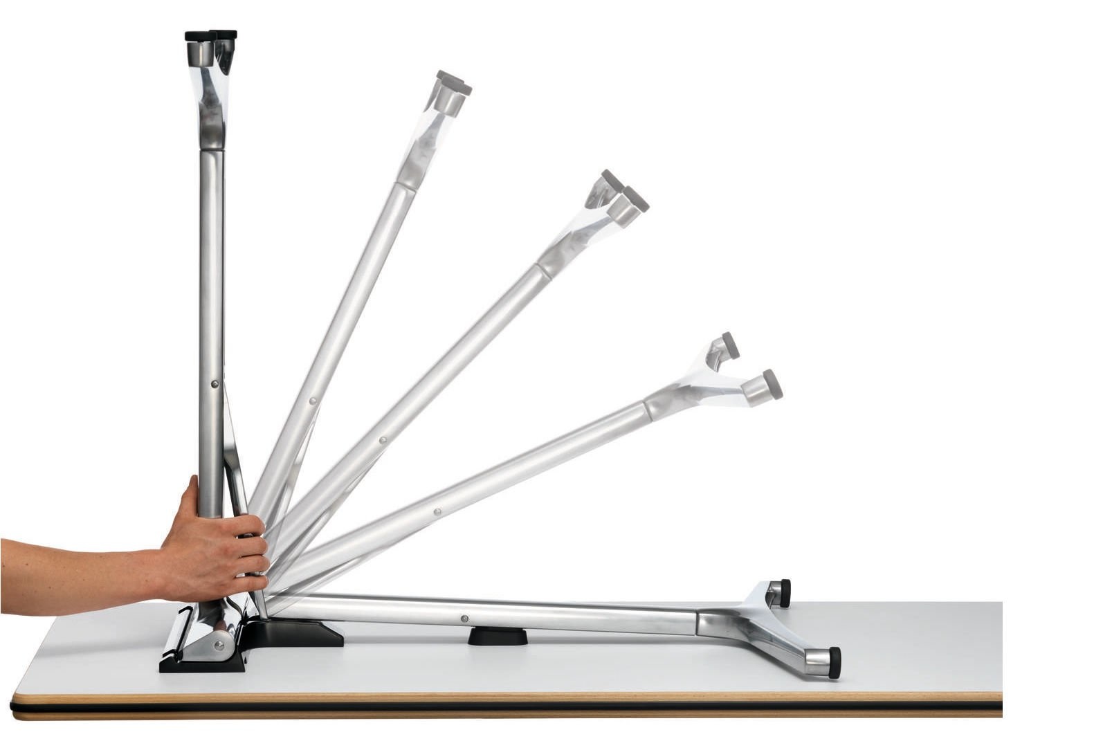 Minimale handling - maximaal voordeel: de nieuwe klaptafel biedt praktische bediening met slechts één hand en een ingenieuze zelfstabiliserende functie, evenals eersteklas design en topkwaliteit.