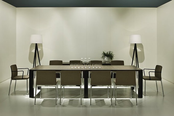 Een enkele rechthoekige bladvorm en een type tafelpoot zorgen voor een veelvoudige inzetbaarheid.