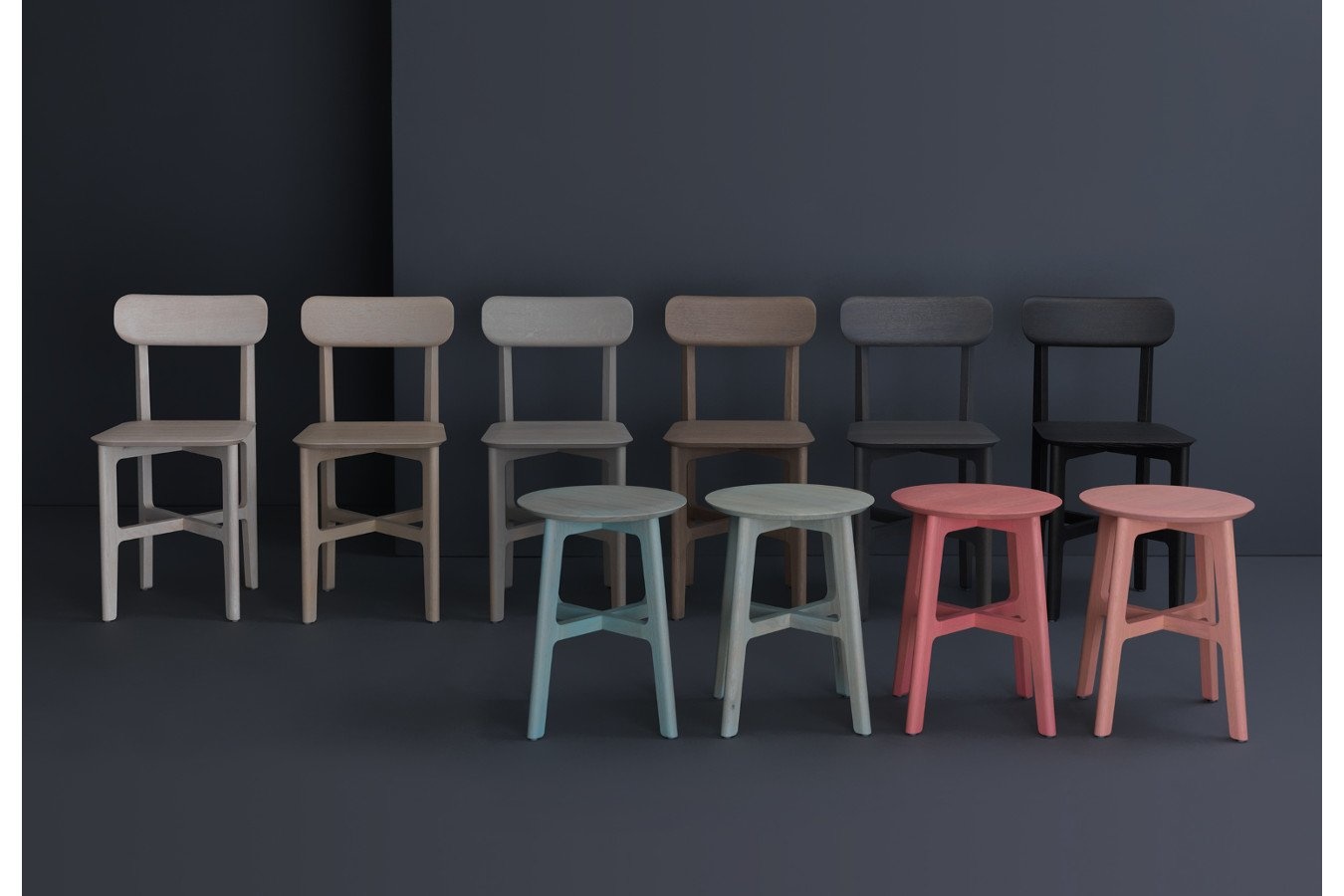 Zeitraum 1.3 serie bestaat uit een stoel, kruk en barkruk. Het meest opvallende kenmerk van deze meubellijn zijn de fijne contouren van de zitting en rugleuning. Design Kihyun Kim. Het ziet er naar uit alsof de lichtgewicht stol drijft op de lucht.